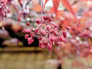 久し振りの雨です ノムラモミジに花がつきました。