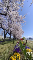 桜とチューリップ 新潟市内を横切る信濃川の堤防満開でした