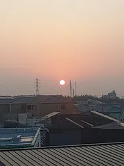 黄砂の日の出 おはようございます😊🔆晴れてはいるのですが黄砂の影響なのか日の出が霞んで紅いです😅🔆