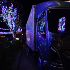 イルミネーショントラック 御殿場駅前イルミネーションの横で搬入搬出作業していたトラックに写るイルミネーションのリフレクションです。なかなか綺麗でした😊