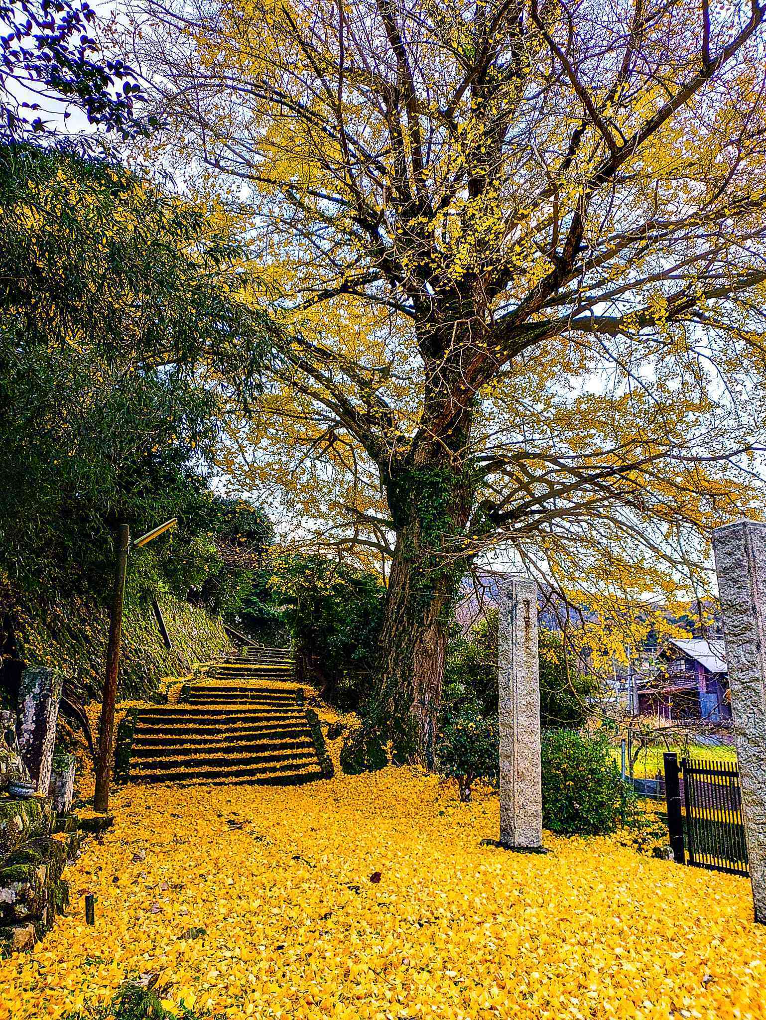 歩いたら葉っぱで滑りそうですが。