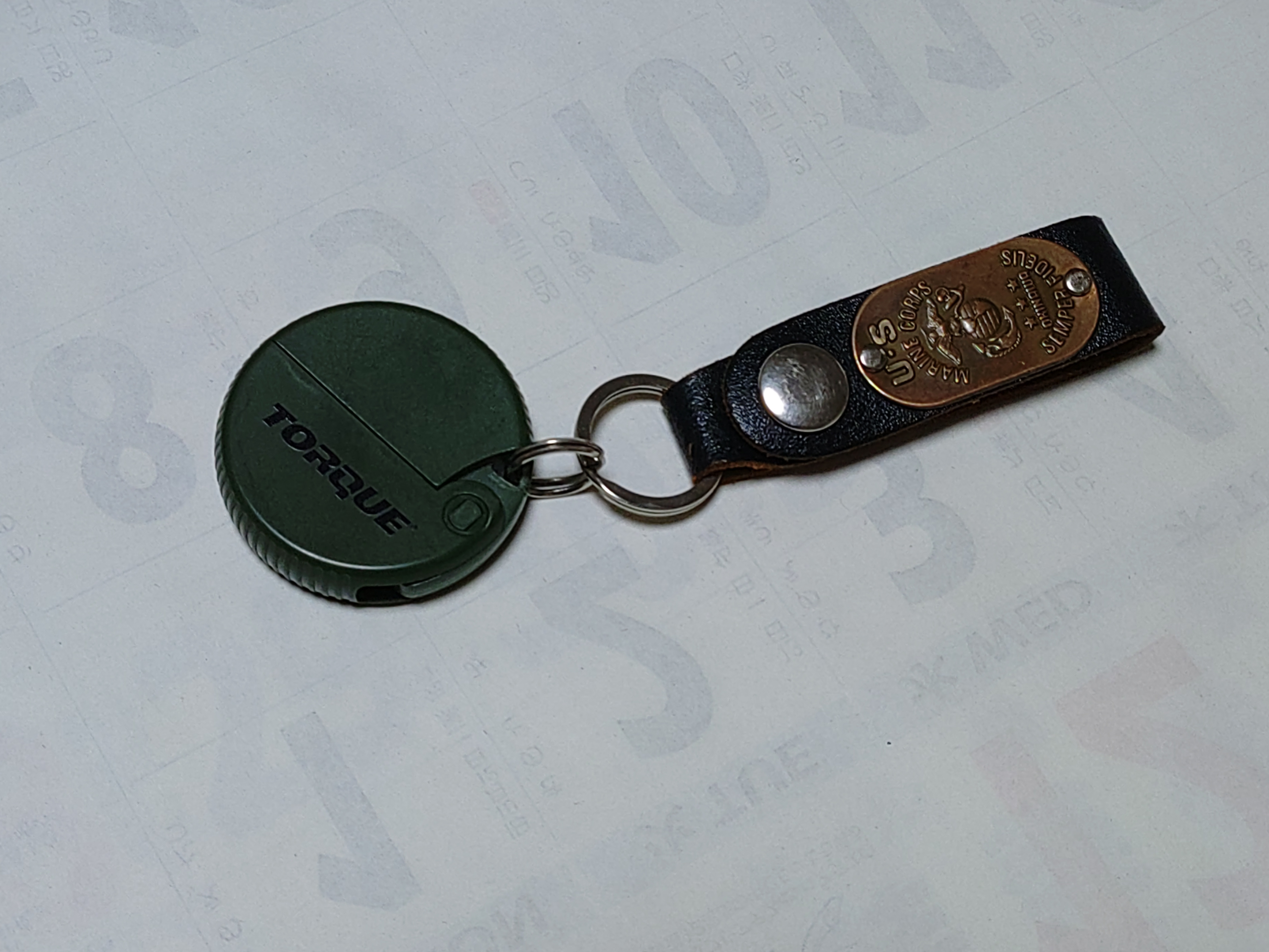 コードホールにリングを填めて、アメリカ海兵隊のキーホルダーを付けてみました。ベルトポーチからぶら下げると、作業しやすく気に入っています。