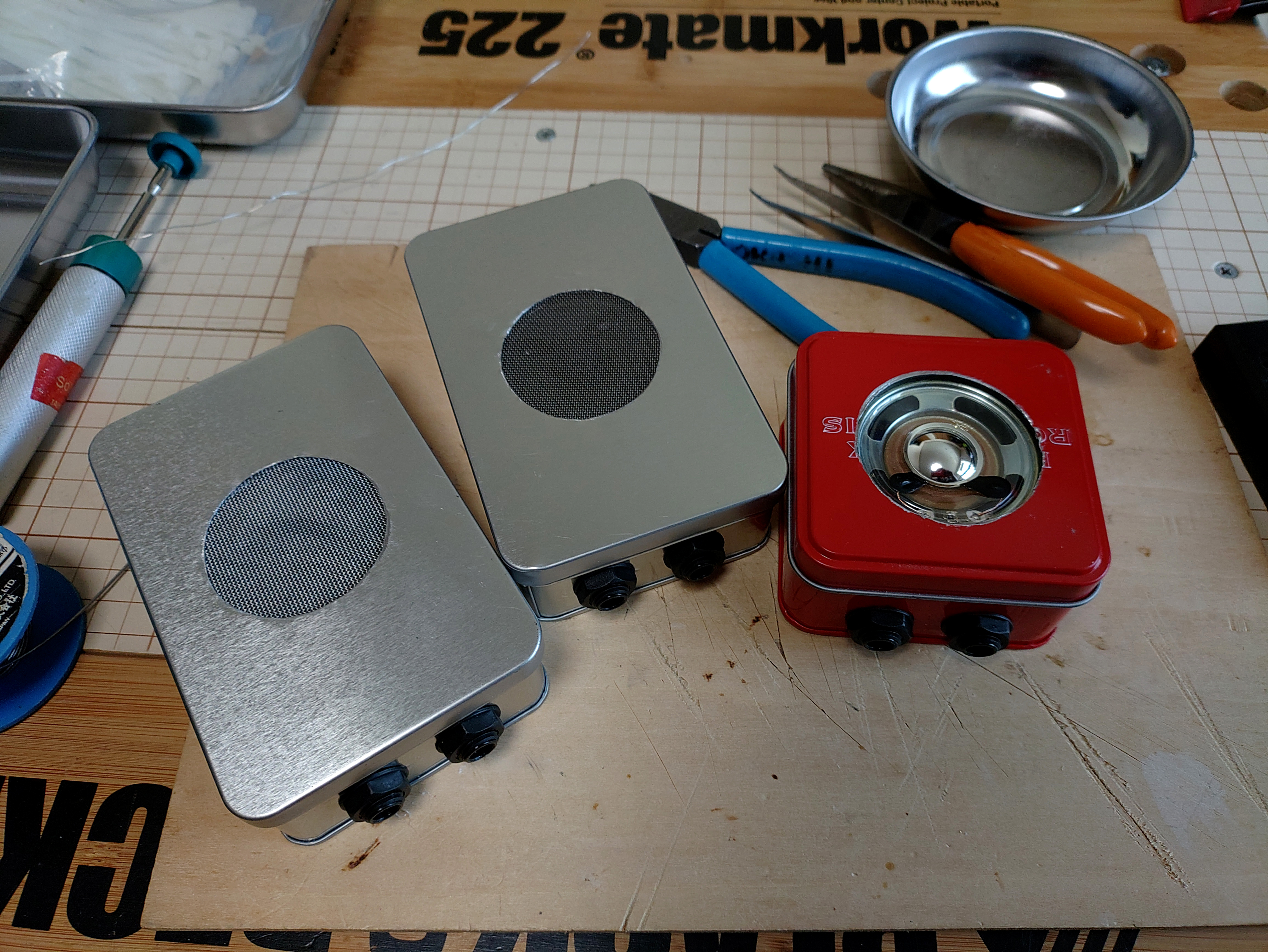 トップ > TORQUEフォト > 工作 Johnson 2024/03/29 19:34 工作 以前にも投稿した「スモーキーアンプ」(エレキギター用アンプ)でございますが、今回は販売用に製作してみました。 売れるかどうかは不明ですが・・・。 (+_+) いいね 共有する 共有する X facebook LINE リンクをコピー コメントする 4 件の返信 (新着順) ミュートしたユーザーの投稿です。 投稿を表示 まっちゃ 2024/03/30 11:32 どんな音がするんだろう🔊🎸 家電量販店に行くとFenderやマーシャルなどのギターアンプ風の小型スピーカーがよく売ってますね。みんなギターで使うんだって思ったらスマホから飛ばして鳴らすのですね いいね 返信する ミュートしたユーザーの投稿です。 投稿を表示 Johnson 2024/03/30 18:26 まっちゃ 今時はBluetooth 様様ですね。100均でも販売しております。m(_ _)m 「スモーキーアンプ」は知られていないかもしれないので一応説明入れておきます。 トッププロも愛用する世界最小のギターアンプ 『スモーキーアンプはカスタムギターアンプデザイナーとして有名なブルーズ・ジンキーによるクールで本格的なミニギターアンプです。そのサイズからは想像できない強力なディストーションサウンドは、ローリングストーンズ、エアロスミス、ZZトップ、コーン、オフスプリングなどがレコーディングに使用しているところからも証明済み。違いがわかるギタリストならポケットに忍ばせたい逸品です!』 ってな感じです。 いいね 返信する ミュートしたユーザーの投稿です。 投稿を表示 二次元ガレージ 2024/03/30 01:39 手先器用ですね( *゚A゚) ギターやってた時だったら欲しかった…( 。゚Д゚。) いいね 返信する ミュートしたユーザーの投稿です。 投稿を表示 Johnson 2024/03/30 07:18 二次元ガレージ ありがとうございます。 欲しい人しか欲しいと思う様なアイテム?なので、それが面白くて色々製作しております。 いいね 返信する ミュートしたユーザーの投稿です。 投稿を表示 gaṇeśa śama LEGEND (2024) 2024/03/30 00:15 これはぜひ売れて注文殺到の予感 いいね 返信する ミュートしたユーザーの投稿です。 投稿を表示 Johnson 2024/03/30 07:20 gaṇeśa śama ライブハウスに置いておくと酔っぱらった人が買ってくれます。 笑 いいね 返信する ミュートしたユーザーの投稿です。 投稿を表示 にしもん@50s pro LEGEND (2024) 2024/03/29 20:01 😀あー😀📢ぁ゙ー😀📢がぁー😀📢ばぁ゙ー いいね 返信する