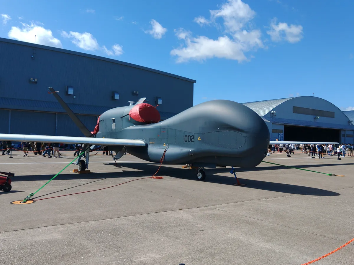 航空自衛隊のRQ4Bグローバルホークです。米空軍ではすべてアメリカ本土から操縦しているそうですが、三沢のはどこで動かしているのか…?