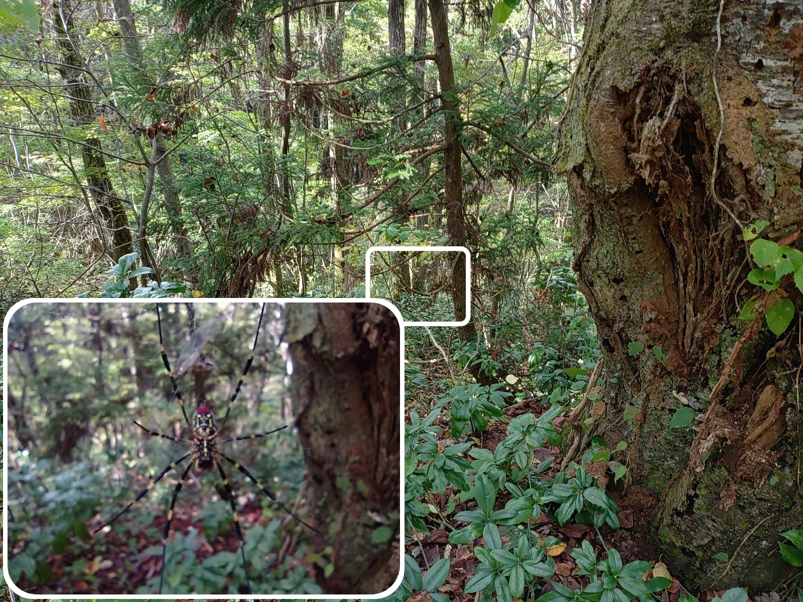投稿を表示営巣の構図と蜘蛛本体が良くわかる虫眼鏡写真のお手本です