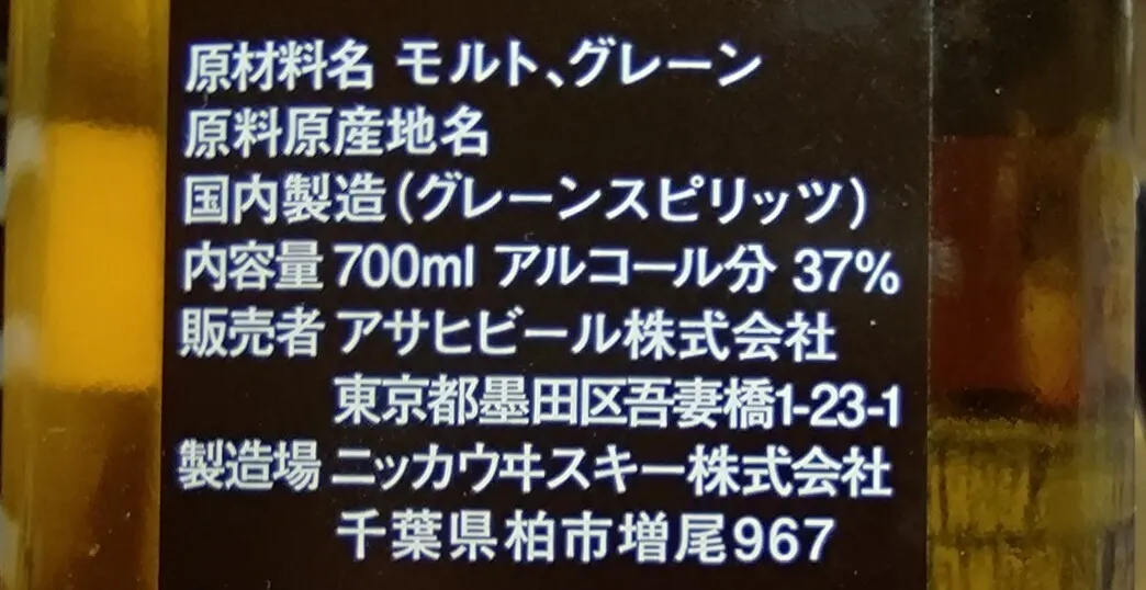 去年、サントリーの角瓶やブラックニッカの材料表記が変わり、少々物議を醸しました。カッコ付きでグレーンスピリッツとは‥つまり原材料モルトとグレーンの原酒以外にグレーンを使った熟成してない蒸留酒が入ってるという事か?