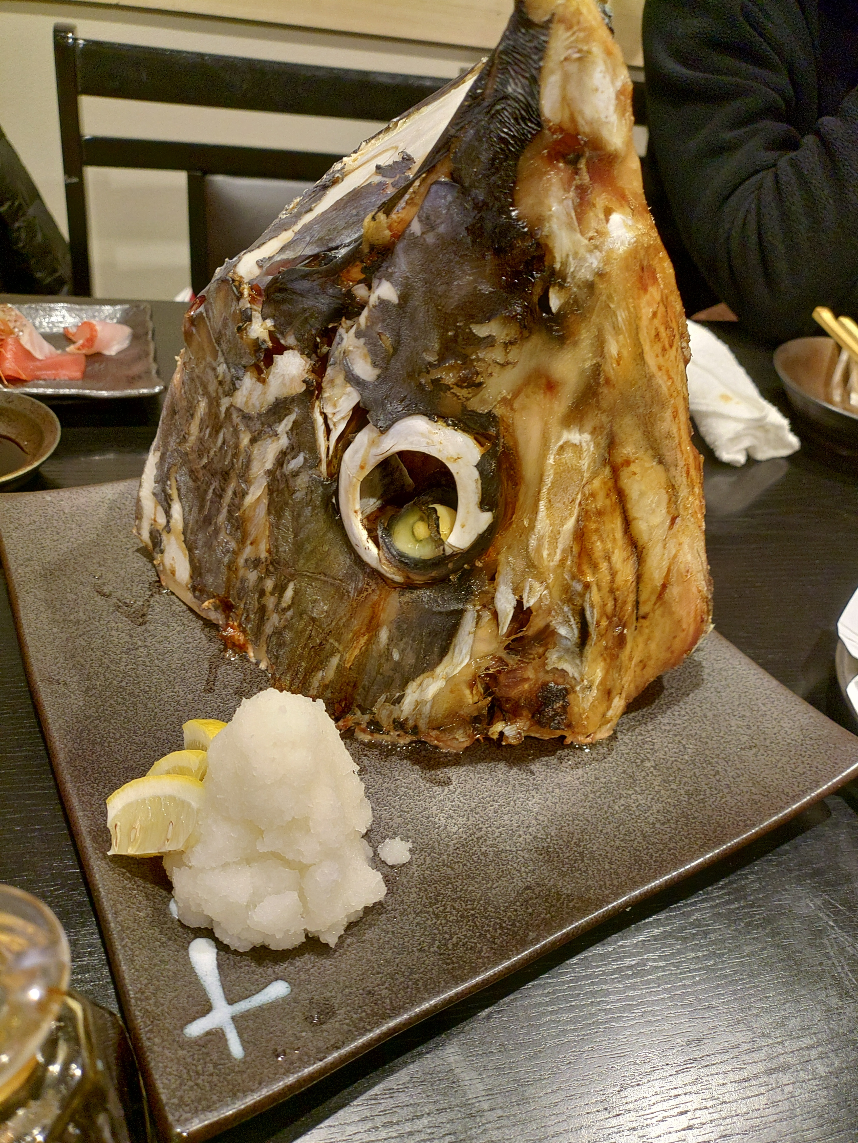 トップ > TORQUEフォト > マグロの兜焼き TUBEMAN 2026/03/17 12:41 マグロの兜焼き 手袋🧤をはめて解体 シーチキンとはよく言ったもので ケンタッキーのような様々な旨味がつまった複雑な鶏肉のような味 眼球は自分が頂きました👁️ 周りのデロンとした部分は食べてません。核の部分だけです。 飲み放題6000円のコースで このボリューム😋 今年で5年目になるのかな 高校時代の仲間との高崎での飲み会 子育ても終わり自由を手に入れる年代 さぁ、次行きまっしょい TORQUE G06 いいね 共有する 共有する X facebook LINE リンクをコピー コメントする 3 件の返信 (新着順) ミュートしたユーザーの投稿です。 投稿を表示 ran 2026/03/17 21:29 デローンがコラーゲンたっぷりなのに・・・マグロのコラーゲンは効きそうですよ。(笑)😆 いいね 返信する ミュートしたユーザーの投稿です。 投稿を表示 TUBEMAN 2026/03/18 00:29 ran どうも脂肪とコラーゲンの関係が良くわからないのです…。コラーゲンは良いと言うけど、摂取して効果を発揮するものなのか? いいね 返信する ミュートしたユーザーの投稿です。 投稿を表示 にしもん@50s pro 2026/03/17 20:52 釜は美味いです‼️目の下辺りが💥😀🍺👍 いいね 返信する ミュートしたユーザーの投稿です。 投稿を表示 TUBEMAN 2026/03/18 00:26 にしもん@50s pro デロデロじゃないですよね? 目の下の肉ですか。よく動く部分だから美味いんでしょうか。 いいね 返信する ミュートしたユーザーの投稿です。 投稿を表示 なか 2026/03/17 19:34 頭肉だけでお腹いっぱいになりそう いいね 返信する ミュートしたユーザーの投稿です。 投稿を表示 TUBEMAN 2026/03/17 19:46 なか コレ、実は半分なんです😆 でも、4人で食べるには充分でした。丁寧にほぐすとかなりの量になりますよ〜。 いいね 返信する TORQUE G06 2023年10月発売。TORQUE初の3眼カメラ搭載。29項目の耐久試験にクリアしつつ、小型・軽量化を実現。 詳細を見る