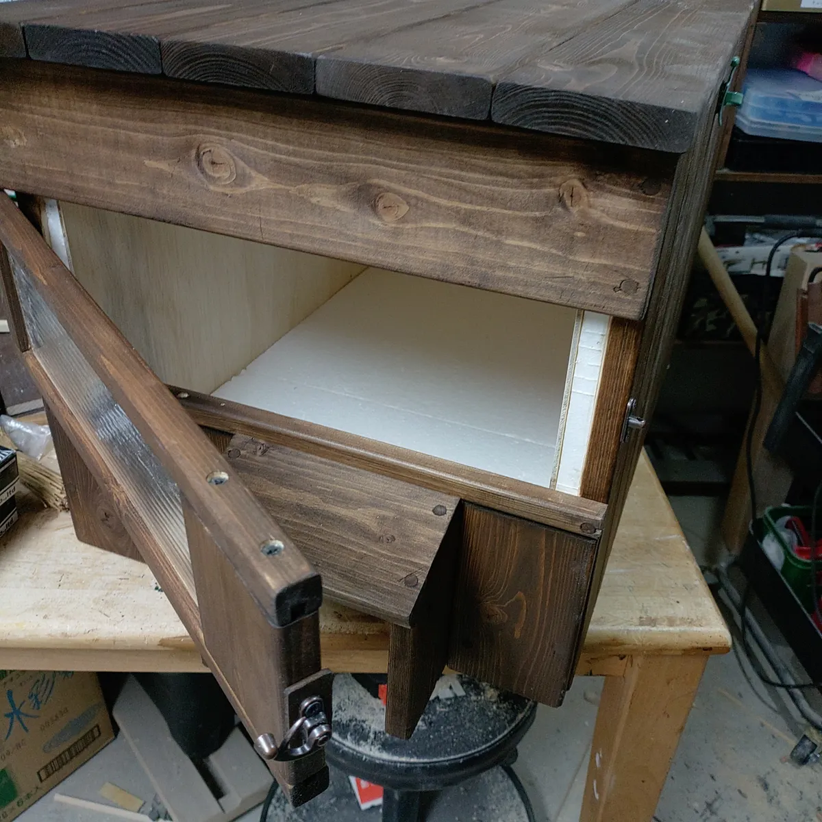 トップ > TORQUEフォト > ぶちこハウス ネログリ 2025/11/21 19:26 ぶちこハウス 周りものすごく乱雑だけどスルーお願いします😺 とりあえずぶちこの家完成〜 掃除しやすいよう上は開閉式で 正面は外から中を確認できる小窓をポリカ使って作りました。 天井と壁に発泡スチロール、床は二重で入れてます。 一応雪が吹き込まないベランダに設置予定なので屋根は平らになっています。 油性のオイルステインを外側に塗ったので乾燥させて明日設置するよ! ぶちこ、連日ごはん食べに来てる。 話しかけてるけど いいから早くごはんよこせ的な事を言われ…💦 ねこ 猫 猫ハウス DIY いいね 共有する 共有する X facebook LINE リンクをコピー コメントする 3 件の返信 (新着順) ミュートしたユーザーの投稿です。 投稿を表示 にしもん@50s pro 2025/11/22 10:02 何か😺が使ってたバスタオルとかを入れとくと良いですが、、そんな事関係無しに入ってくる神経の図太さがあれば問題無し😺✨💪 いいね 返信する ミュートしたユーザーの投稿です。 投稿を表示 ネログリ 2025/11/22 22:14 にしもん@50s pro ぶちこの物が何かあれば良いのですがいつも身一つで来るので…💦 うちのねこのニオイついたタオル入れたらだめだろうなぁ〜 いいね 返信する ミュートしたユーザーの投稿です。 投稿を表示 マンボウ 2025/11/22 04:51 中に入ってくれると良いですね~ いいね 返信する ミュートしたユーザーの投稿です。 投稿を表示 ネログリ 2025/11/22 09:52 マンボウ はいー(^v^) 入って欲しいです!! いいね 返信する ミュートしたユーザーの投稿です。 投稿を表示 まっちゃ 2025/11/21 21:40 中に入るかな🐈️ いいね 返信する ミュートしたユーザーの投稿です。 投稿を表示 ネログリ 2025/11/22 00:32 まっちゃ そこが1番問題なんですよね💦💦 いいね 返信する
