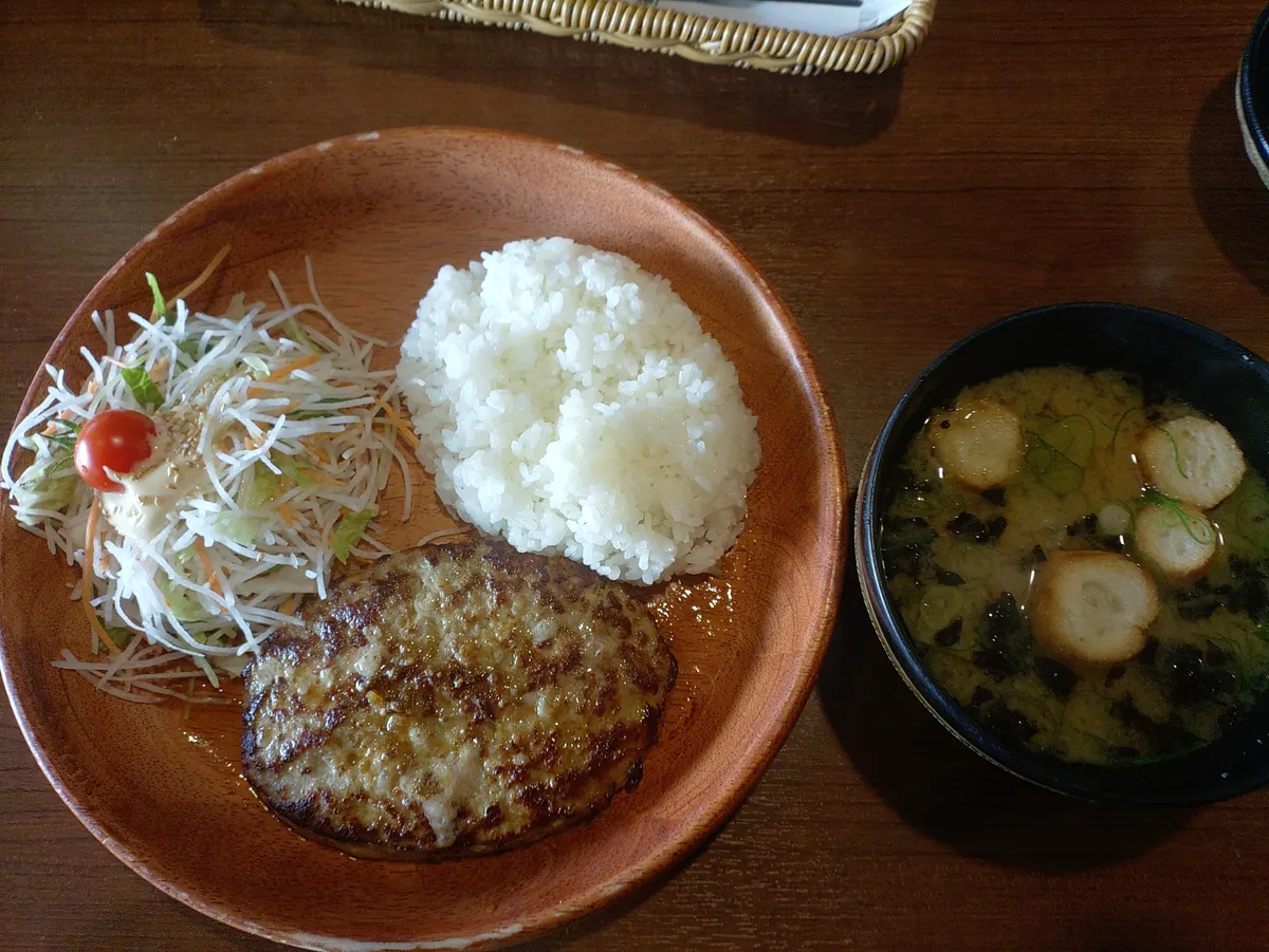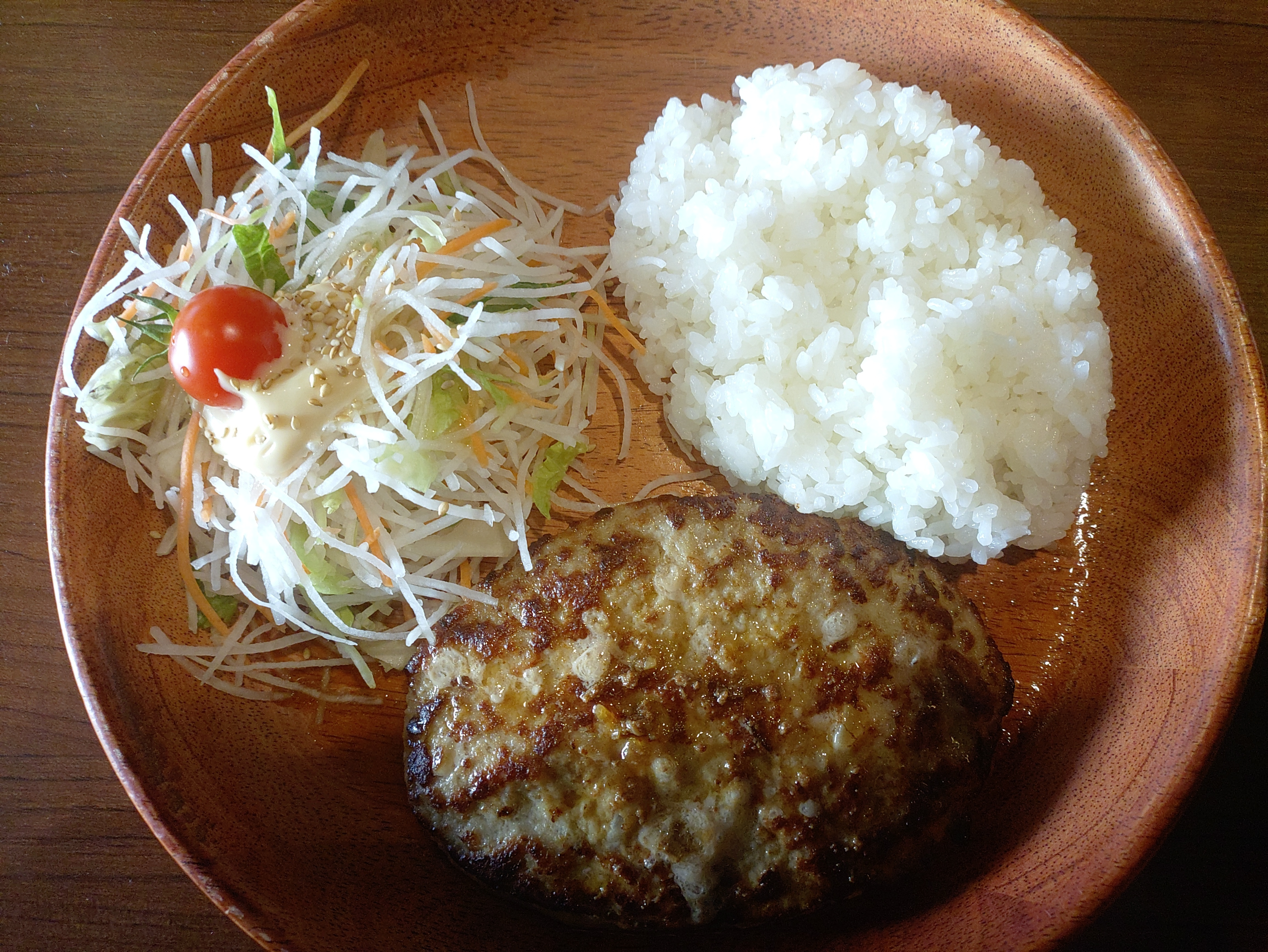 投稿を表示ライス ハンバーグ サラダの大きさ盛り付けが美しく△