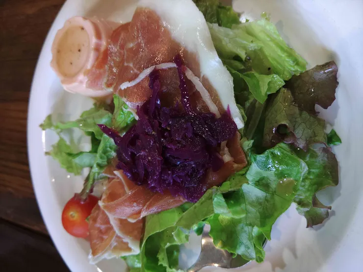 サラダに添えられたトマトのムースが美味しい
