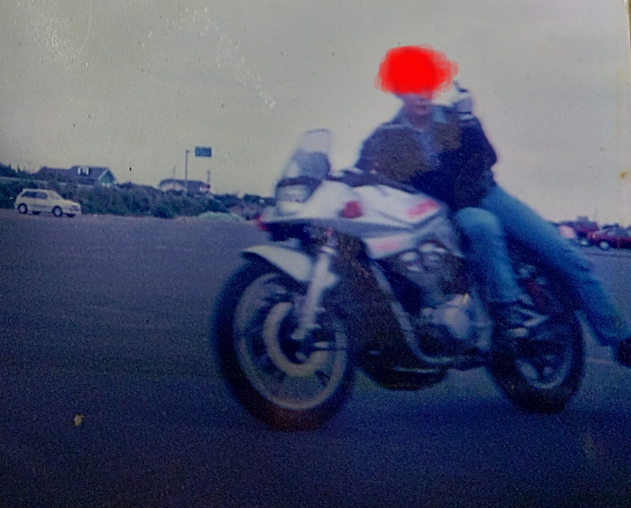 この写真は、ナンパ成功した二人組みの女の子と海岸で花火する前に、バイクの曲乗り披露してるところを友人がパシャッ。写ルンです撮影なので、画質もブレも酷いもんです。