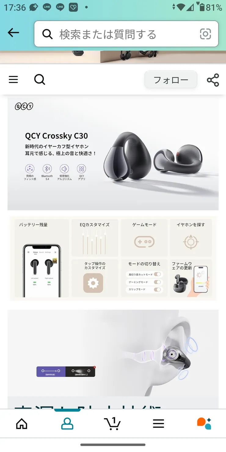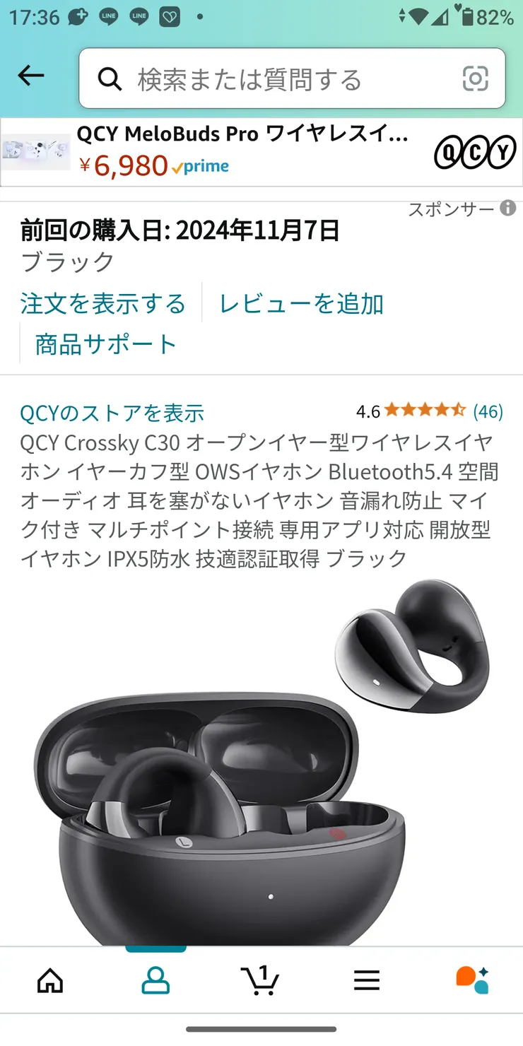先月のAmaz◯nセールで爆発的に売れたYoutubeでも話題のコスパ良いイヤーカフ型イヤホンが在庫復活したので購入しました😀👍💥