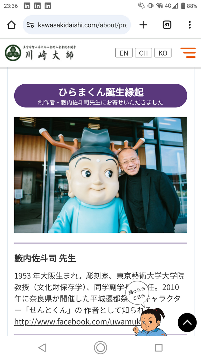 トップ > TORQUEフォト > ひらまくんクエスト t-yashiki 2025/01/11 00:31 ひらまくんクエスト 川崎大師の節分会のポスターにせん…ではなくひらまくんがお務めしています🦌 …で、ちょっと気になってお寺のHP覗いて見たら、どうやらリアルひらまくんが出没しているようです🙀 みんな、川崎大師でボクと握手🦸さて、 今からそいつを これからそいつを 探しに行こうか😊😎 あ、せんとくんとの2ショットもありました🕺🕺 本当にせんとくんの作者がひらまくんデザインしてました いいね 共有する 共有する X facebook LINE リンクをコピー コメントする 1 件の返信 (新着順) ミュートしたユーザーの投稿です。 投稿を表示 にしもん@50s pro 2025/01/11 12:50 最近せんとくん見ないんですよ😀💦🍵 何処かに出張なのかも知れません💧 いいね 返信する ミュートしたユーザーの投稿です。 投稿を表示 t-yashiki 2025/01/11 13:07 にしもん@50s pro さすがに15年モノですから、せんとくん😅 出張先が涅槃でないことを祈りますか🙏 いいね 返信する