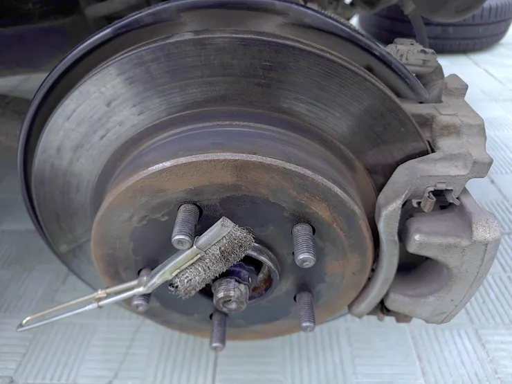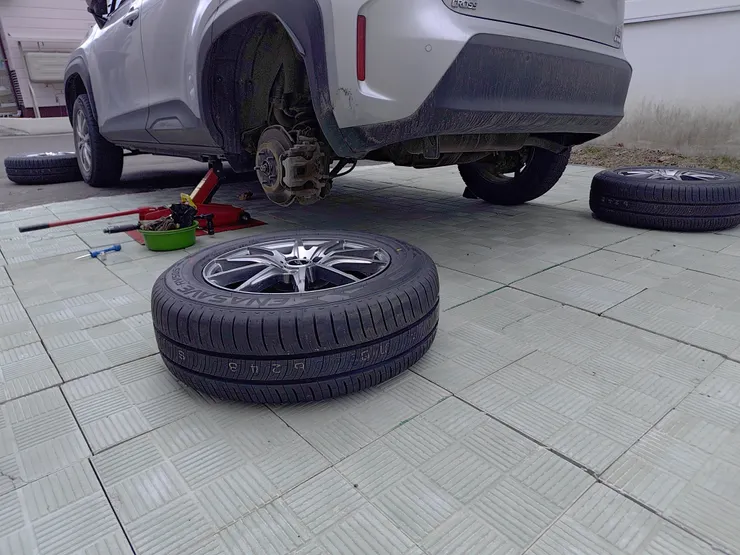 ▷いつもより早いがタイヤ交換しながらFacebookのアニメ動画聴きながら錆びゴシゴシ取り転換液ヌリヌリ丁寧にはかどるね。