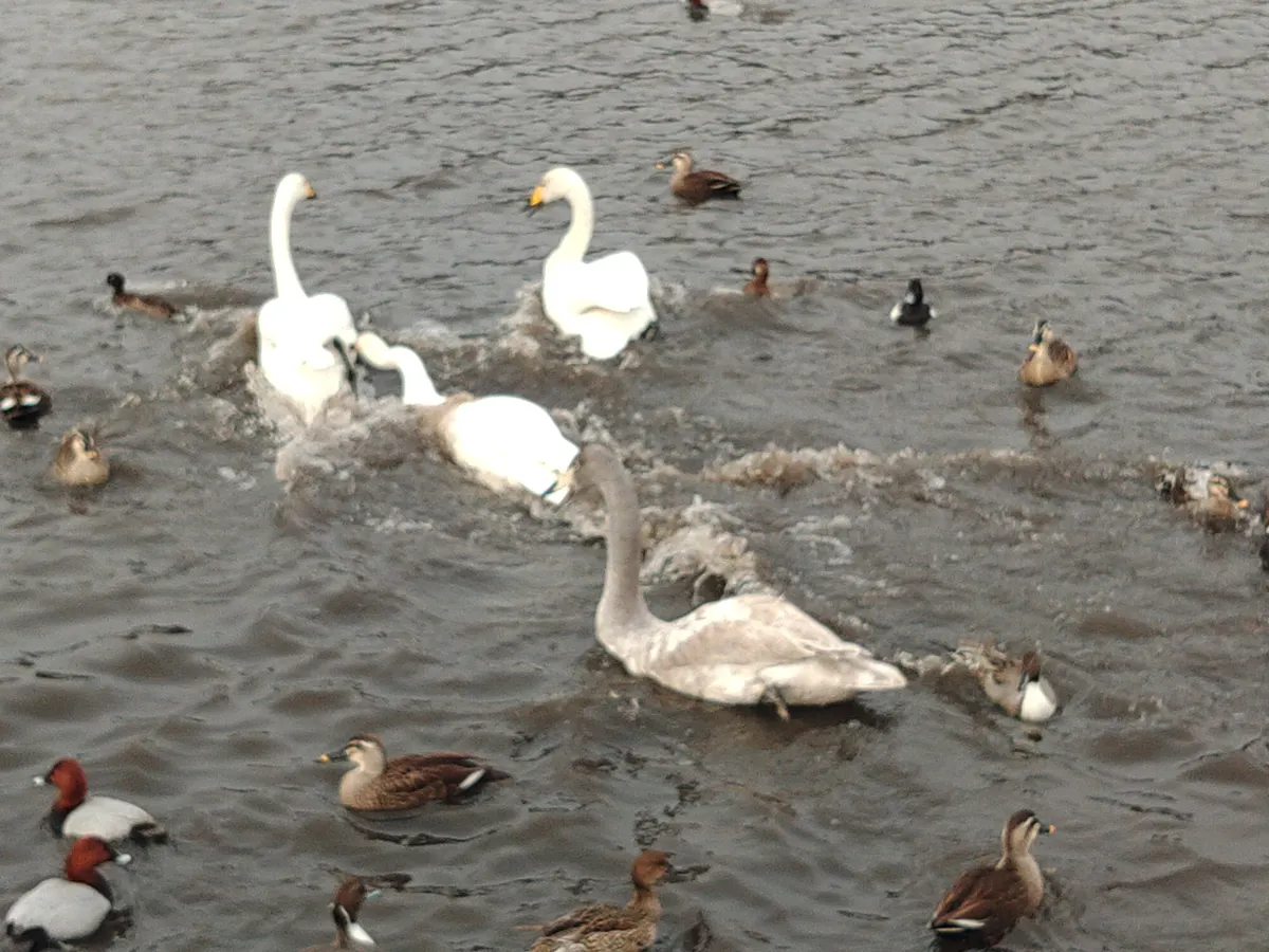 トップ > TORQUEフォト > 白鳥が増えました ぽんた 2026/01/11 13:30 白鳥が増えました 昨年の11月に冬鳥を見に行った、おいらせ町の間木堤に行って来ました。白鳥もカモ類も増えていました…。 右側のちょっと灰色が残る白鳥はまだ若い個体です。 エサを狙って群がる鳥たち。グワグワとにぎやかです。 エサをさらっていった個体をどつき回す白鳥。 「よお、なんでおめえエサよこさないんだよ~」(白鳥の心の声)にらまれてる…😱 堤の端の方は凍っていました。気温も思ったほどあがらず、寒かったです。 TORQUE 5G Coleman LIMITED いいね 共有する 共有する X facebook LINE リンクをコピー コメントする 4 件の返信 (新着順) ミュートしたユーザーの投稿です。 投稿を表示 にしもん@50s pro 2026/01/11 19:43 鳥インフルエンザにご注意DEATH😱💥🍺💦 いいね 返信する ミュートしたユーザーの投稿です。 投稿を表示 ぽんた 2026/01/11 21:22 にしもん@50s pro ありがとうございます。近づき過ぎないように気をつけます。 いいね 返信する ミュートしたユーザーの投稿です。 投稿を表示 さかな 2026/01/11 18:33 餌あげると手まで食べられますよ😁 こちらの白鳥人慣れして手から食べるのいましたよ😸 いいね 返信する ミュートしたユーザーの投稿です。 投稿を表示 ぽんた 2026/01/11 21:20 さかな コメントありがとうございます。それはすごい!白鳥が人の手から餌を食べるとは…。ウミネコは餌ごと人の指をくわえるヤツがいましたが、あれは餌しか見ていないですね…。白鳥でそこまで人に慣れているのはすごいですね。 いいね 返信する ミュートしたユーザーの投稿です。 投稿を表示 ナナヨン 2026/01/11 18:28 冬は色々鳥がやってきて賑やかになりますね 帰ってしまうと淋しい気持ちになります いいね 返信する ミュートしたユーザーの投稿です。 投稿を表示 ぽんた 2026/01/11 21:14 ナナヨン コメントありがとうございます。そうですね。これだけいる鳥たちが渡って行ってしまうと寂しいですが、その頃にはウミネコが渡って来るので、場所は変わりますがまたにぎやかになると思います。 いいね 返信する ミュートしたユーザーの投稿です。 投稿を表示 イワナ 2026/01/11 15:53 昔、仕事でイギリスに行った時に、ホテルの傍の湖畔に白鳥がいて手を伸ばしたら、クチバシでめっちゃ突かれました。 側の立て看板に英語で「全ての白鳥はエリザベス女王の持ち物です。白鳥を傷付けたり虐待したら、あなたは罰せられます」的な事が書かれててビビりました😱 白鳥は‥高貴な生き物なのです🐱 いいね 返信する ミュートしたユーザーの投稿です。 投稿を表示 ぽんた 2026/01/11 16:05 イワナ コメントありがとうございます。イギリスでお仕事ですか!グローバルにご活躍されているのですね。 白鳥は体が大きいこともあってか、とろくて他の鳥にエサをさらわれることがよくあります。その割に気性が荒く、エサをさらっていった相手を追いかけ回す一面もあります。一見優雅なイメージですが、見ているとやはり野生動物だなあと思います。イギリスでも、白鳥は白鳥なのだと、なんだか安心しました。 いいね 返信する ミュートしたユーザーの投稿です。 投稿を表示 イワナ 2026/01/11 16:20 ぽんた 昔、某メーカーの設計支援で外国に行かされましたが‥外注設計の小間使いですよ。イギリスは物価が高くて貧乏暮らしでした😭 白鳥はなかなかヤバいですね。イキってるのは、保護されてるイギリスの白鳥だけかと思ったら‥日本も同じでした🙀 いいね 返信する TORQUE 5G Coleman LIMITED 2021年5月発売。老舗アウトドアブランド「コールマン」とのコラボモデル。 詳細を見る