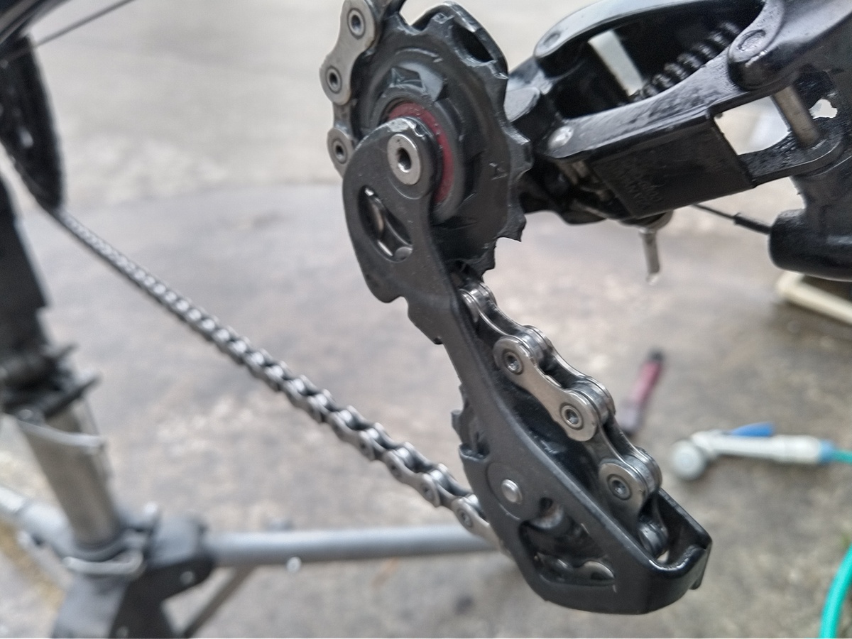 トップ > TORQUEフォト > 【佐渡直前】自転車洗浄【5/19】 gaṇeśa śama 2024/05/16 05:53 【佐渡直前】自転車洗浄【5/19】 o(^o^)o今週末の佐渡ロングライド210出走前に自転車を洗浄します。 チェーンの汚れを落とし注油をします。ディレイラーにも注油です。 チェーンが黒いですねえホイールを外しての洗浄です。今は新車では消えてしまったリムブレーキ。キャリパーは105 5800黒かったチェーンをここまで磨きます。シルバーギラリ!チェーンはデュラエースプーリーと写っていませんがBBはどちらもセラミック プーリーの汚れも取りました いいね 共有する 共有する X facebook LINE リンクをコピー コメントする 2 件の返信 (新着順) ミュートしたユーザーの投稿です。 投稿を表示 にしもん@50s pro 2024/05/16 09:37 丸ごと漬けれる超音波洗浄機があれば楽ですね😅💦 ホイールとかの頑固な汚れも簡単に❗ 洗車機メーカー作ってくれないかな〜 いいね 返信する ミュートしたユーザーの投稿です。 投稿を表示 gaṇeśa śama 2024/05/16 09:41 にしもん@50s pro ある程度チェーンを洗った後に外して超音波洗浄に かける人の記事を見たことがあります。 ただしチェーンの駒の中の汚れが取れても水が入ってしまうので チェーンの乾燥をしっかりやる必要があるそうです。 いいね 返信する ミュートしたユーザーの投稿です。 投稿を表示 にしもん@50s pro 2024/05/16 11:03 gaṇeśa śama キャブとかインジェクションとかブラスト洗浄できないのは何やら高温高圧釜?みたいのに入れて洗浄液も水では無さそうでした😀機会があればどうゆう仕組みか調べてみようと思ってます✨ いいね 返信する ミュートしたユーザーの投稿です。 投稿を表示 gaṇeśa śama 2024/05/16 11:24 にしもん@50s pro 謎の分解技術ですね いいね 返信する ミュートしたユーザーの投稿です。 投稿を表示 gaṇeśa śama 2024/05/16 06:01 チェーンには一コマずつ注油です。 いいね 返信する ミュートしたユーザーの投稿です。 投稿を表示 赤錆 2024/05/16 11:14 本格的に自転車やるにはそこまでする必要があるんですね、大変だなぁ。 いいね 返信する ミュートしたユーザーの投稿です。 投稿を表示 gaṇeśa śama 2024/05/16 11:31 赤錆 昔はテキトウに洗車してスプレーで注油していたんですが 近年は優れた化学合成オイルがありましてチェーンは一コマづつ 滴下します。 そのあとが各自の考え方でしてそのままオイルがチェーンの駒に 染み込むんですけどそのままだとギトギトすぎて逆に汚れが付くんです。 そのため注油後30分放置したらオイルをふき取るんです。 ですが今回は佐渡ロングライド当日は天気予報は晴れのため、 注油15分でオイル拭き取りとしました。 さらに駒の1個1個の隙間に綿棒を差し込み余分なオイルをふき取ります。 すると超軽くチェーンが回るんです。 逆に雨が予想されるならチェーンのオイルは厚めとします。 いいね 返信する ミュートしたユーザーの投稿です。 投稿を表示 赤錆 2024/05/16 11:44 gaṇeśa śama 参考になりました、ありがとうございます。 いいね 返信する