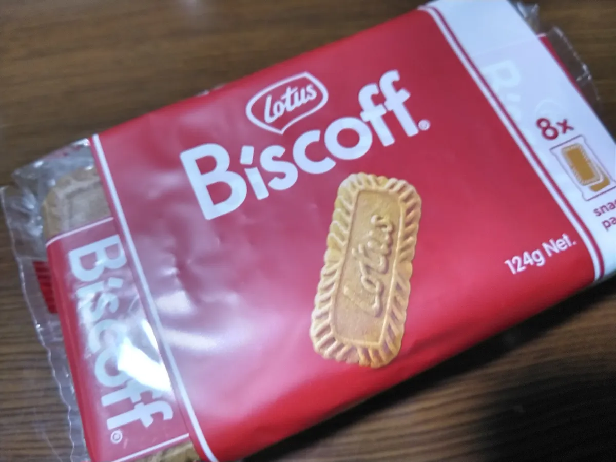 o(^o^)oロータス ビスコフ。ベルギー産のシナモンが効いたビスケットです。