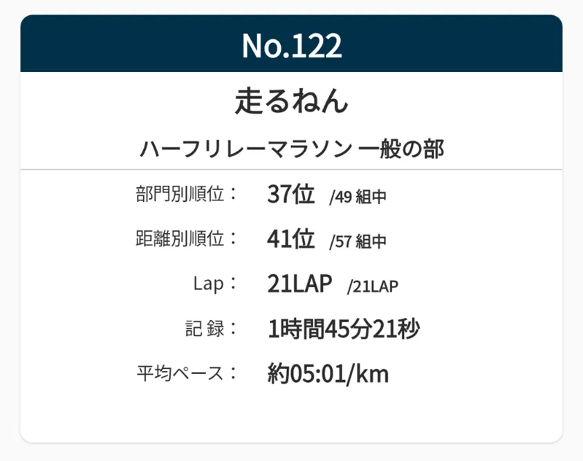 というのも、ほとんどのチームは大体5~8名くらいで参加していて、1位のチームはなんと1時間1分!!大人数で走られていましたが、もし1人で走っていたらほぼ日本記録と変わりません🤣