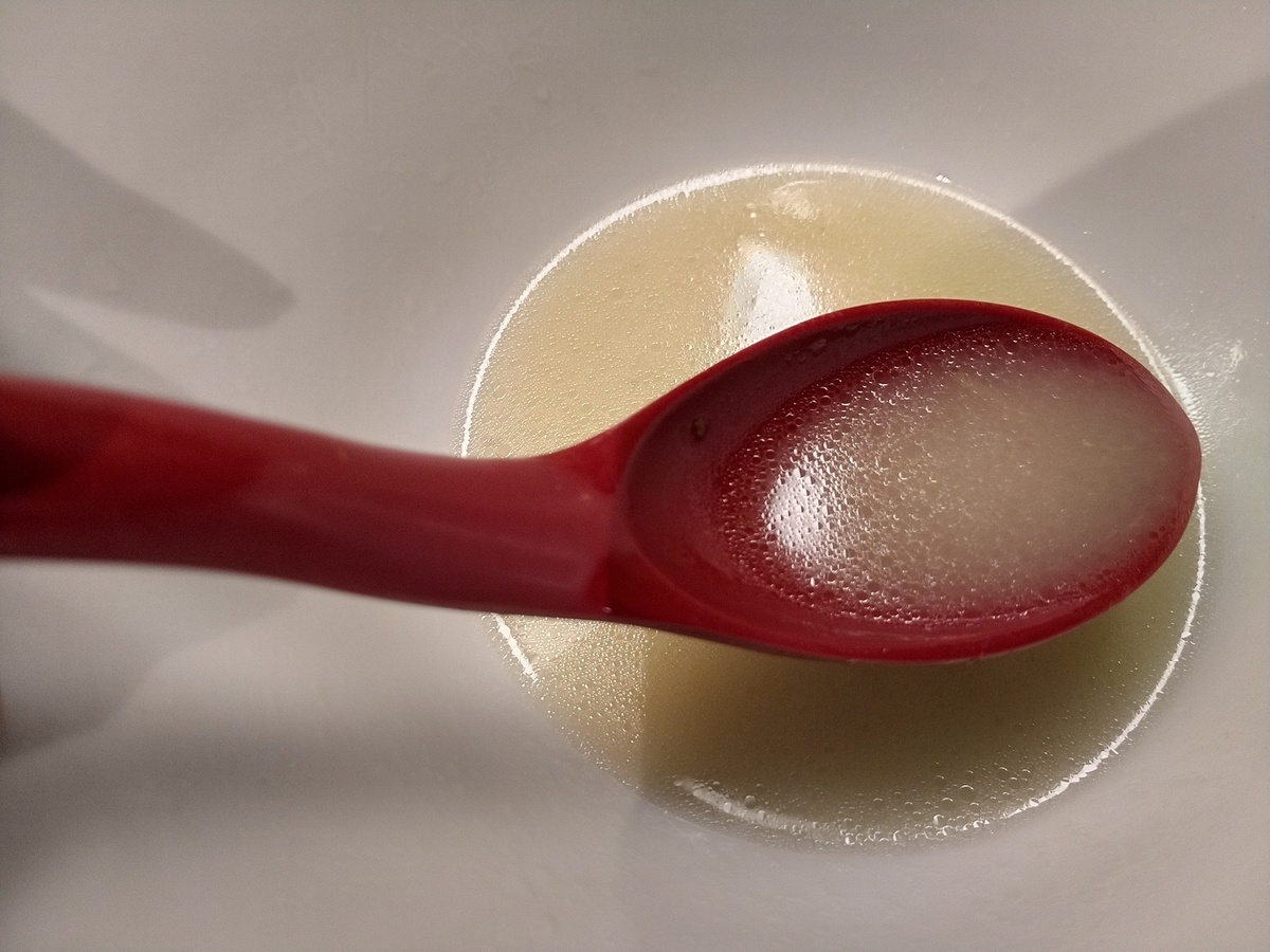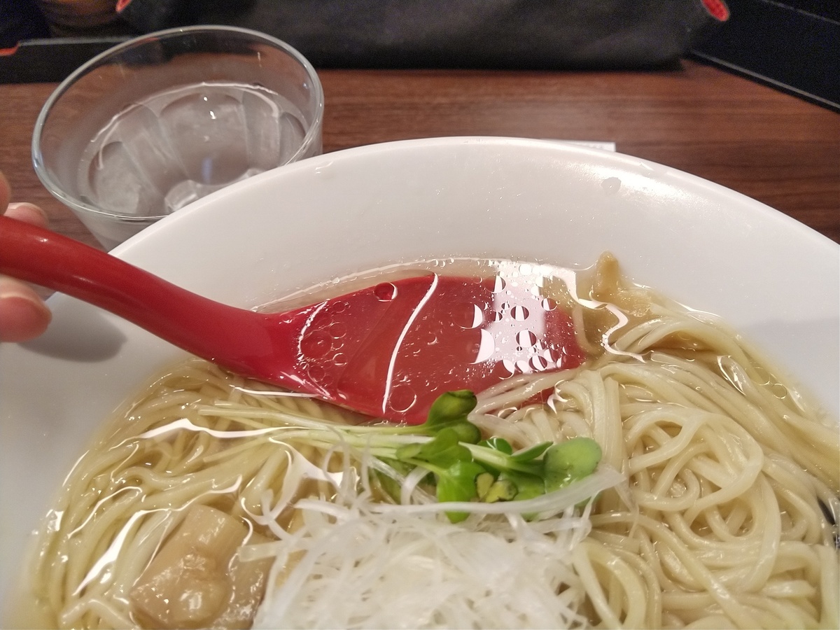 蓮華の中のスープの透明さよ!