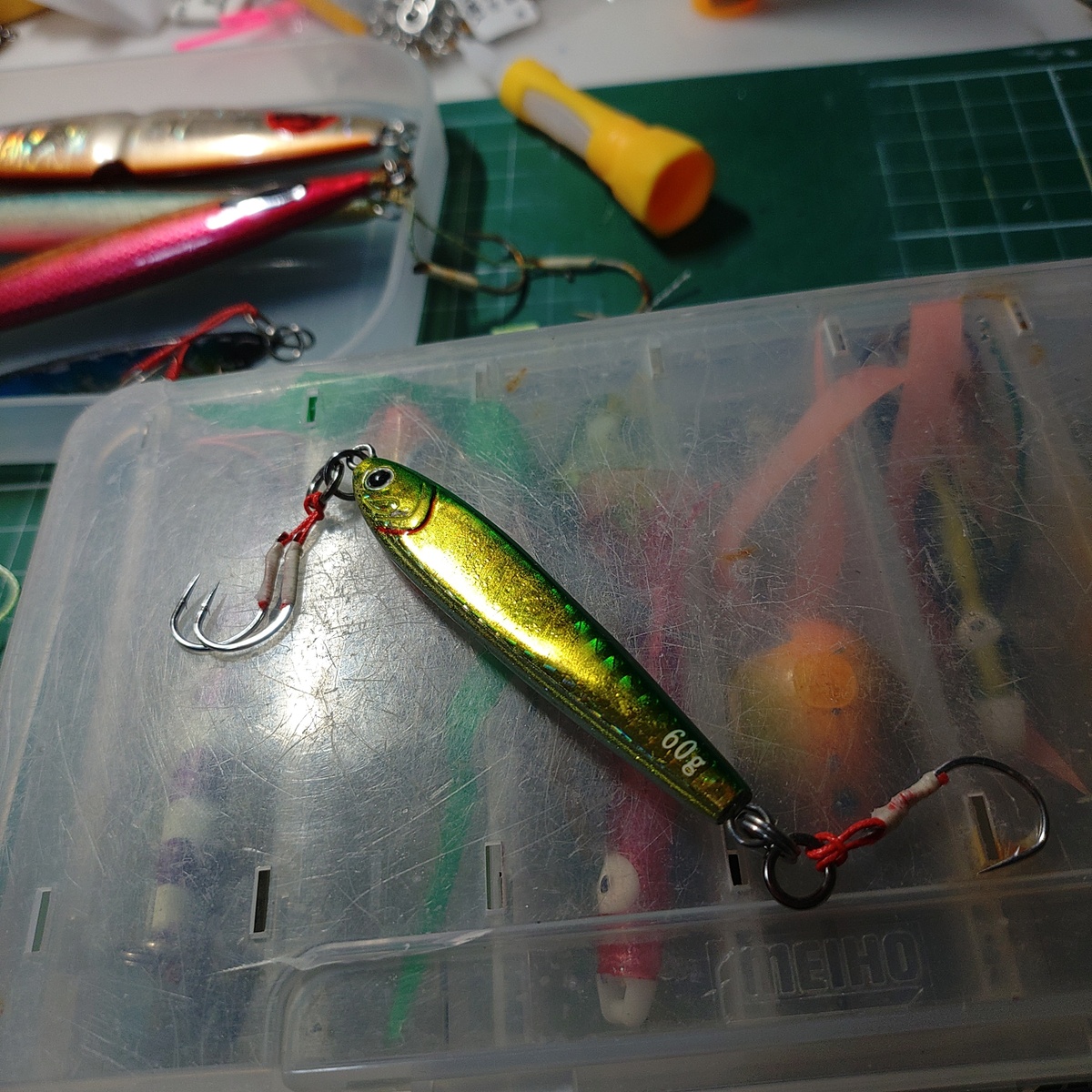 トップ > TORQUEフォト > 楽しみの延長 ささやん 2024/02/05 17:46 楽しみの延長 最近はこの手の作業が とても億劫になってますw 何せ見えないw けど無いと困るので シコシコと仕込んで置きます 買った中古ジグはウレタンコートして 綺麗にしてあげます 乾いたらフックを付けてあげる予定です 先行して一軍ジグのフックを交換しました この子はタングステン今とても流行ってますw いいね 共有する 共有する X facebook LINE リンクをコピー コメントする 3 件の返信 (新着順) ミュートしたユーザーの投稿です。 投稿を表示 にしもん@50s pro 2024/02/05 20:42 華麗な釣りの裏側ではこのような地味?な作業があるんですね😀✨ 私、このような作業の方が好きですね👍✨🍺 コツコツとその時の為に準備する😀✨ いい感じですね😀🍺✨ いいね 返信する ミュートしたユーザーの投稿です。 投稿を表示 まぐろ大将 2024/02/05 20:31 自作のアシストフックですか? 凄いですね✨🤓 ドブ漬けは何回くらいやるのかな 僕の場合はサーフキャスティングジグ なので5回はドブ漬けしますね。 チニング(黒鯛のルアー釣り)流行ってますね 僕も今年から落とし込み&前打ちを 復活させようと思っています。🤓🎶 いいね 返信する ミュートしたユーザーの投稿です。 投稿を表示 ささやん 2024/02/05 21:44 まぐろ大将 サーフだとやってるだけでも痛みますよね! 初期段階でのコートは大事ですよねー フックは組んである物買ってると おサイフに厳しいのでw 今はほとんど 針も縛ってますw やらないのは ワカサギの仕掛け位ですw いいね 返信する ミュートしたユーザーの投稿です。 投稿を表示 爆笑 2024/02/05 19:23 いいですね! 私はチニング用にあれこれ 作ってます。残念なヤツも 沢山ありますが…。 いいね 返信する ミュートしたユーザーの投稿です。 投稿を表示 ささやん 2024/02/05 19:53 爆笑 チニング流行ってますねぇ! やってみたいんですよねー ボンボンとか買ってみようかなーって思ってます! いいね 返信する ミュートしたユーザーの投稿です。 投稿を表示 爆笑 2024/02/05 21:09 ささやん 私の基本はナスおもりに チニング針! そしてお気に入りのワーム! これだけです。 いいね 返信する ミュートしたユーザーの投稿です。 投稿を表示 ささやん 2024/02/05 21:42 爆笑 おお!ではこれでいけちゃいますかね!? 前に少し作りました! いいね 返信する ミュートしたユーザーの投稿です。 投稿を表示 爆笑 2024/02/05 22:03 ささやん いいじゃないですか! 底がギリギリとれるように ナスおもりを1〜2個つけるだけです。 色違いのオモリもいいかもです。 いいね 返信する