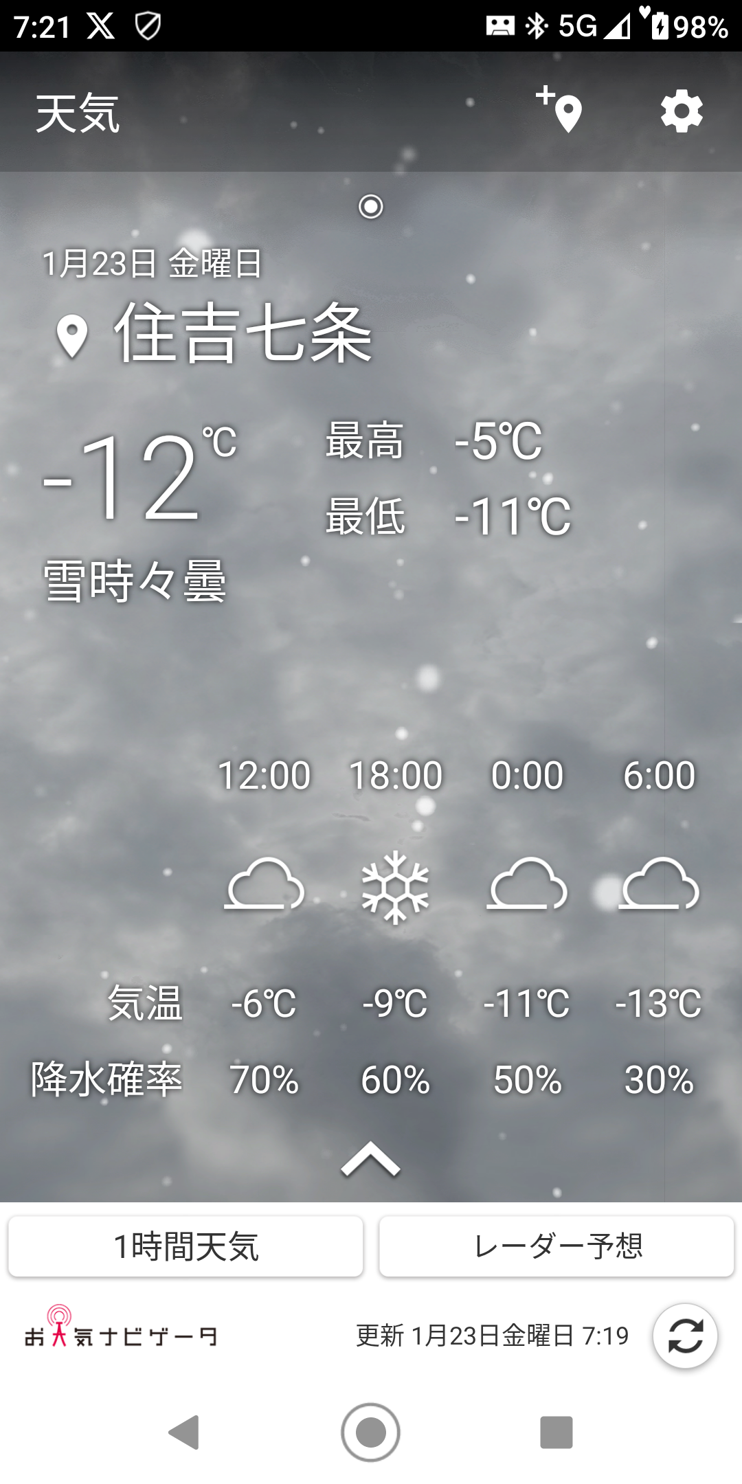 投稿を表示-5℃近くなると痛いです🥶💦現在気温と予想気温と最低気温が何かおかしい❓️