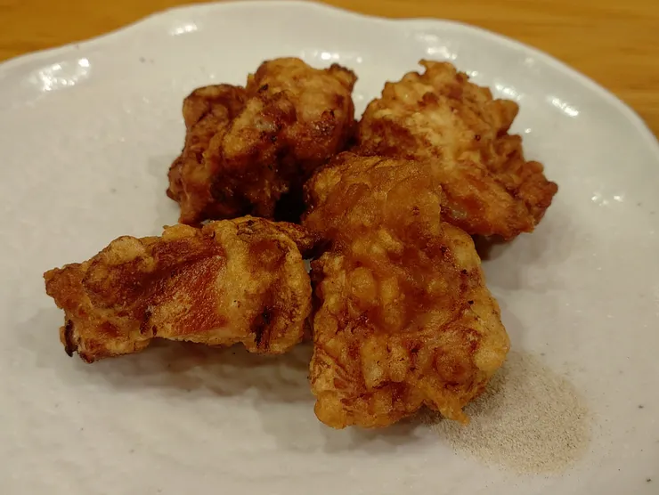 雨で濡れてエアコンで冷えたので辛い物が欲しくなりました😀💦あまり辛くは無いが汗が出る😀💦これは車に戻ったら逆効果では無いかと思いました💦👍ちょっと物足りないので唐揚げ4つ頼みました400円💥😀✨