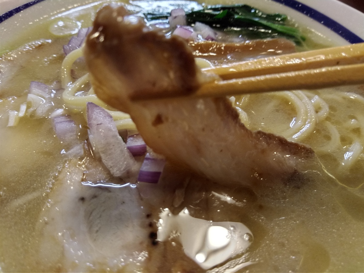 鶏塩パイタンを久々に食べてみたところチャーシューが厚くて蕩ける状態で