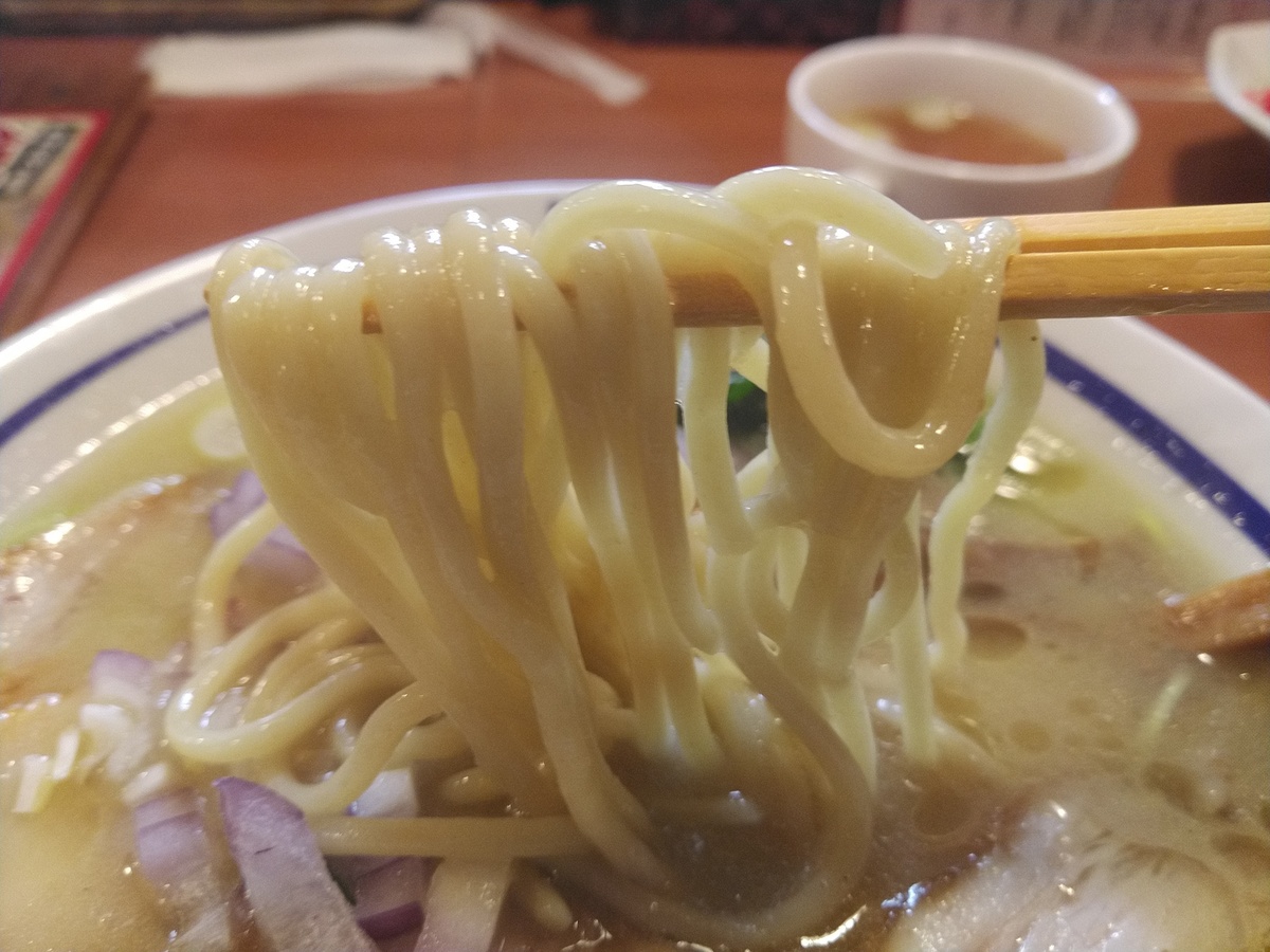 白湯スープに負けない太いシコシコ麺
