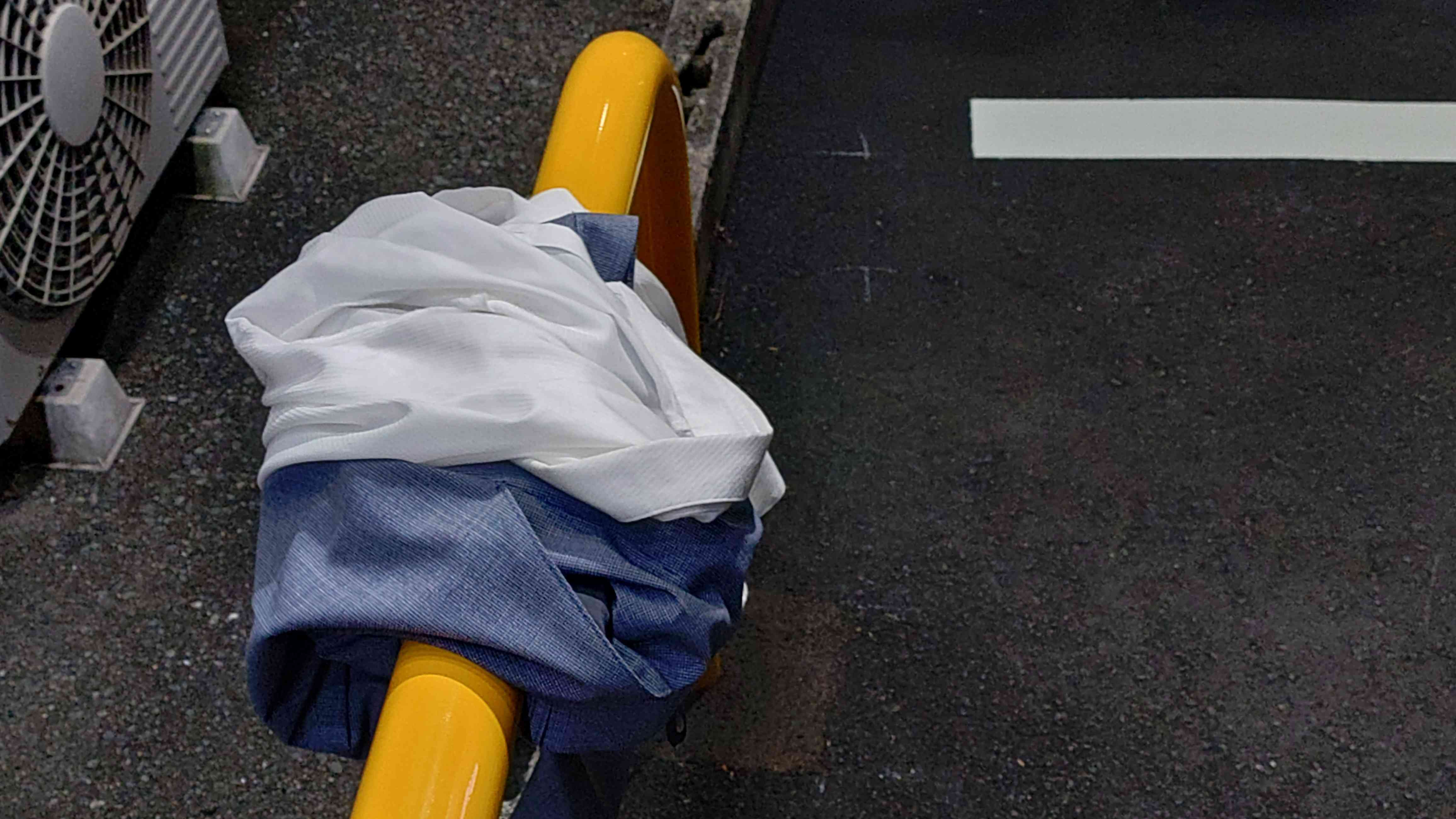 このご時世、闇バイトの逃走中の着替えの後とか。😱