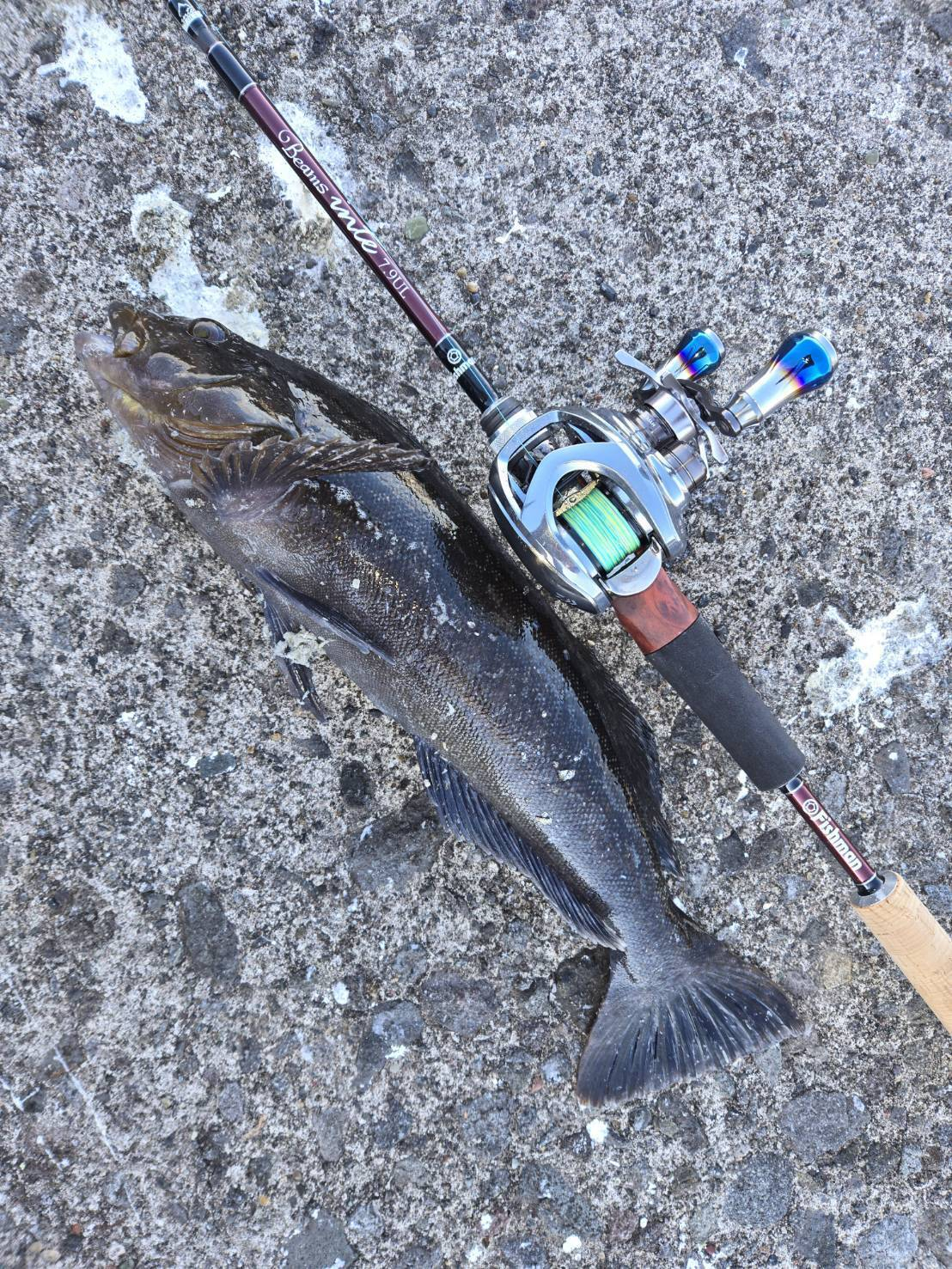 周りではアイナメが結構上がってる!師匠も、45センチオーバーのアイナメ2本上げてる!