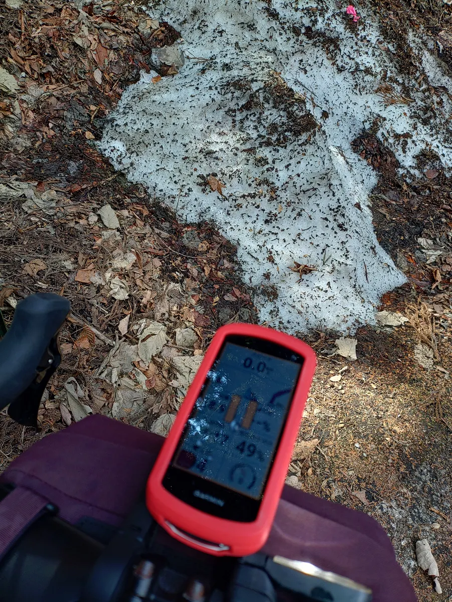 下りの裏は山肌に残雪