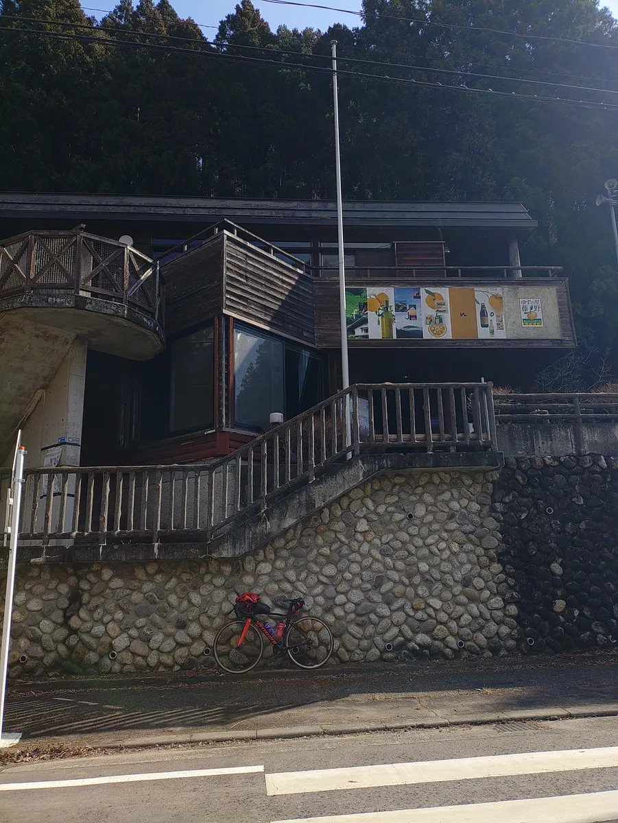 お店の前まで押して行き(歩行者専用の道になってるんです)店の前に止めます