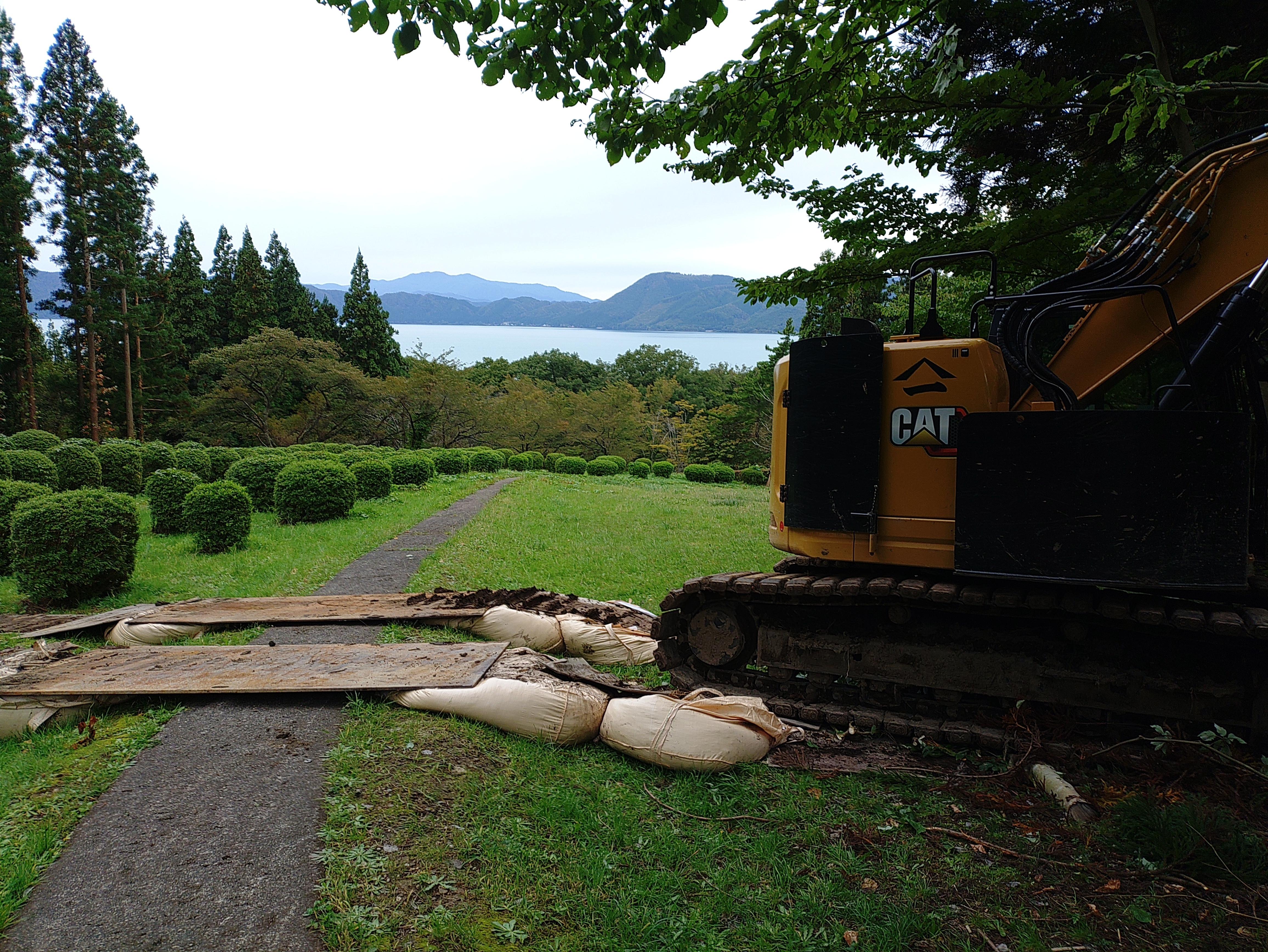 来年、育樹祭がここで開催されると言う事で、手入れを兼ねて間伐をしています。主に重機で間伐しますが、重機が入れない所は手作業で伐採する必要が有り、お手伝いしてきました。