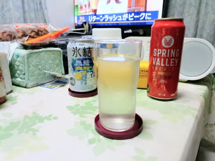 とにかく疲れたから自宅の近所にあるコンビニでキリンのスプリングバレーと、氷結の無糖レモンを購入した。