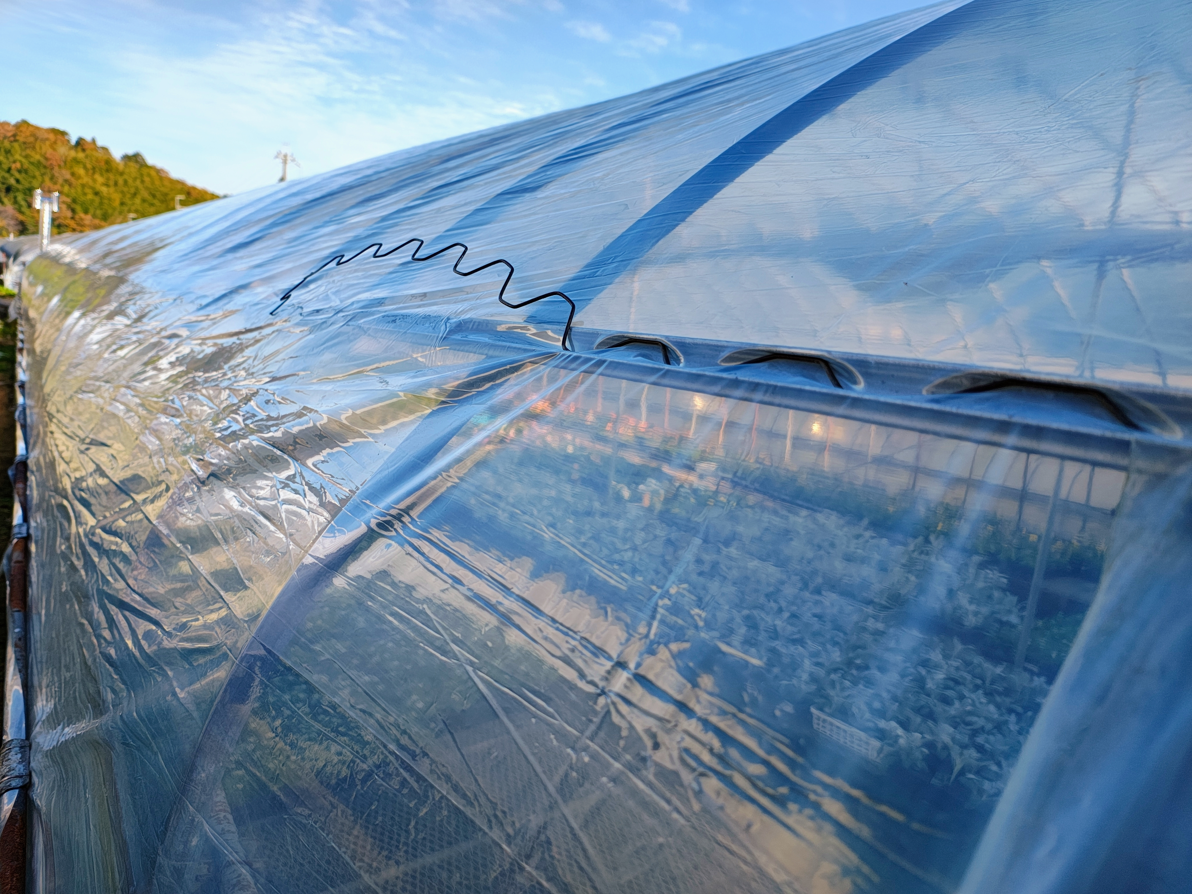 実家の苺🍓ハウスの張替えをしましたがシワにならない様に張替えは難しいですね〜😖