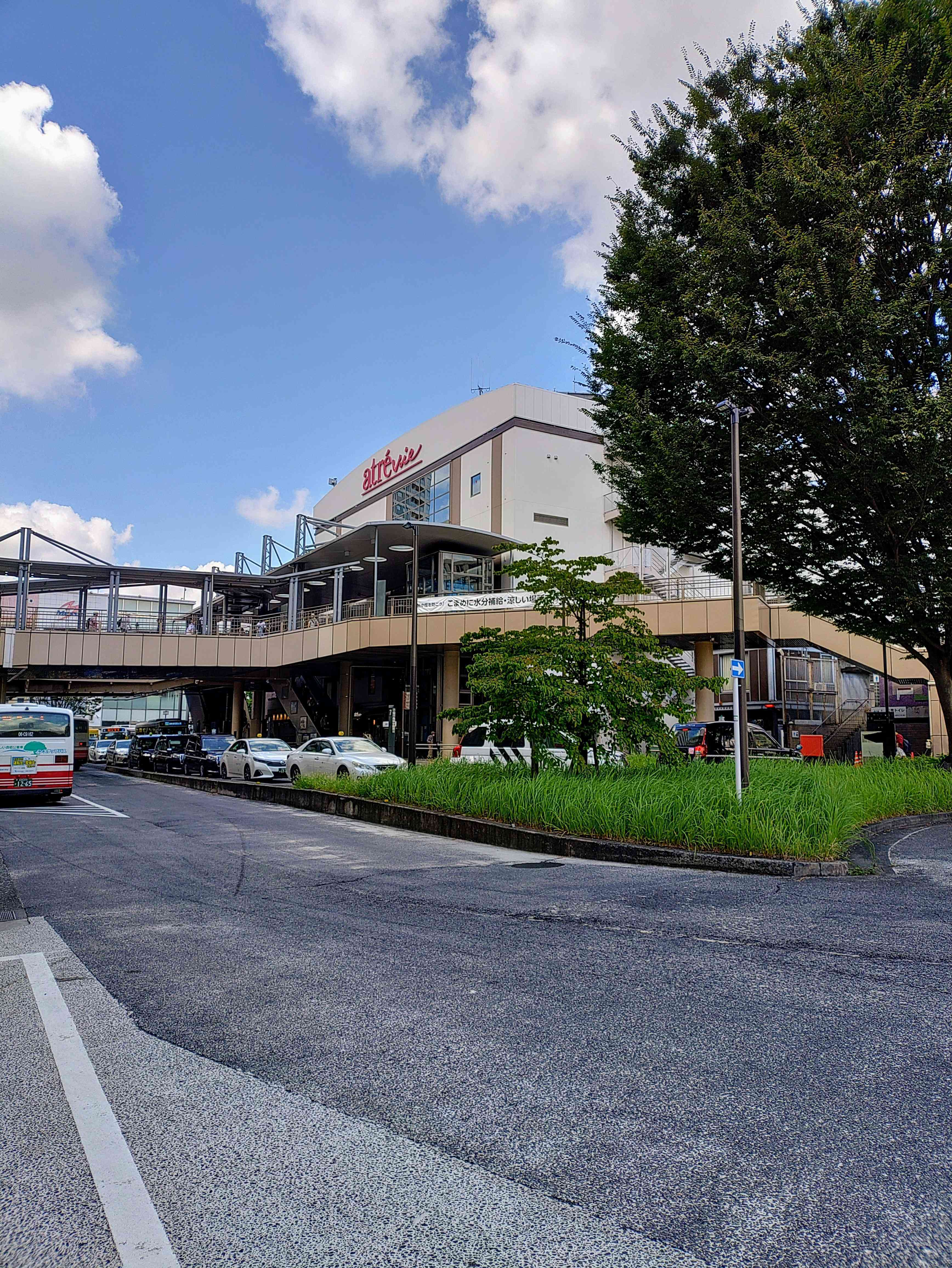 あちらに見えるのが、三鷹駅です。