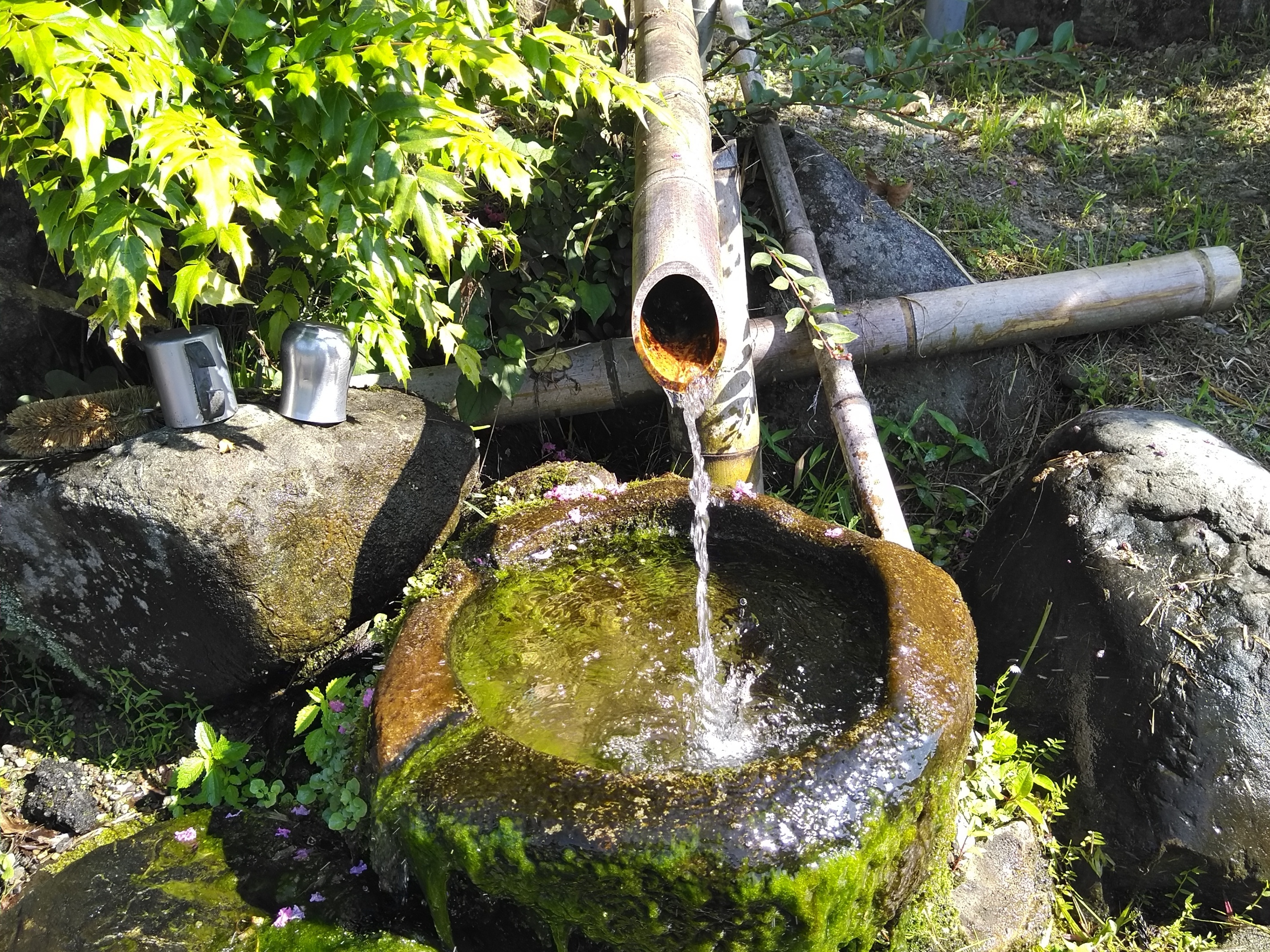 投稿を表示竹から流れて落ちる水は数百メートル先の湧き水なのです。