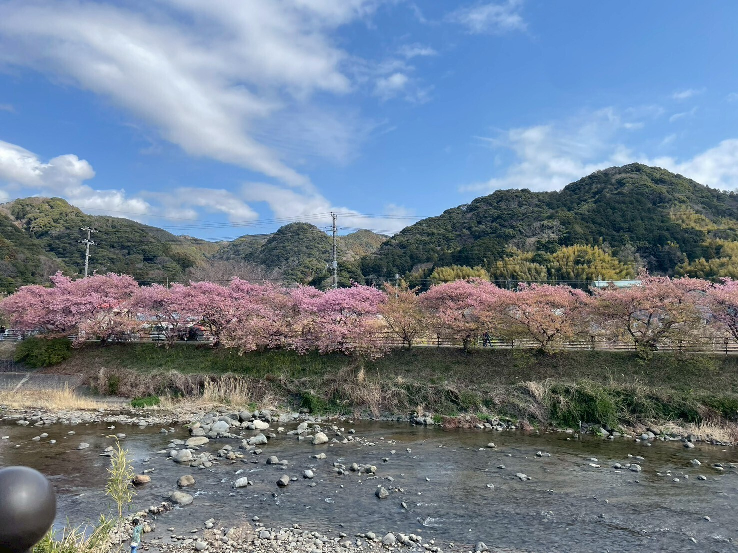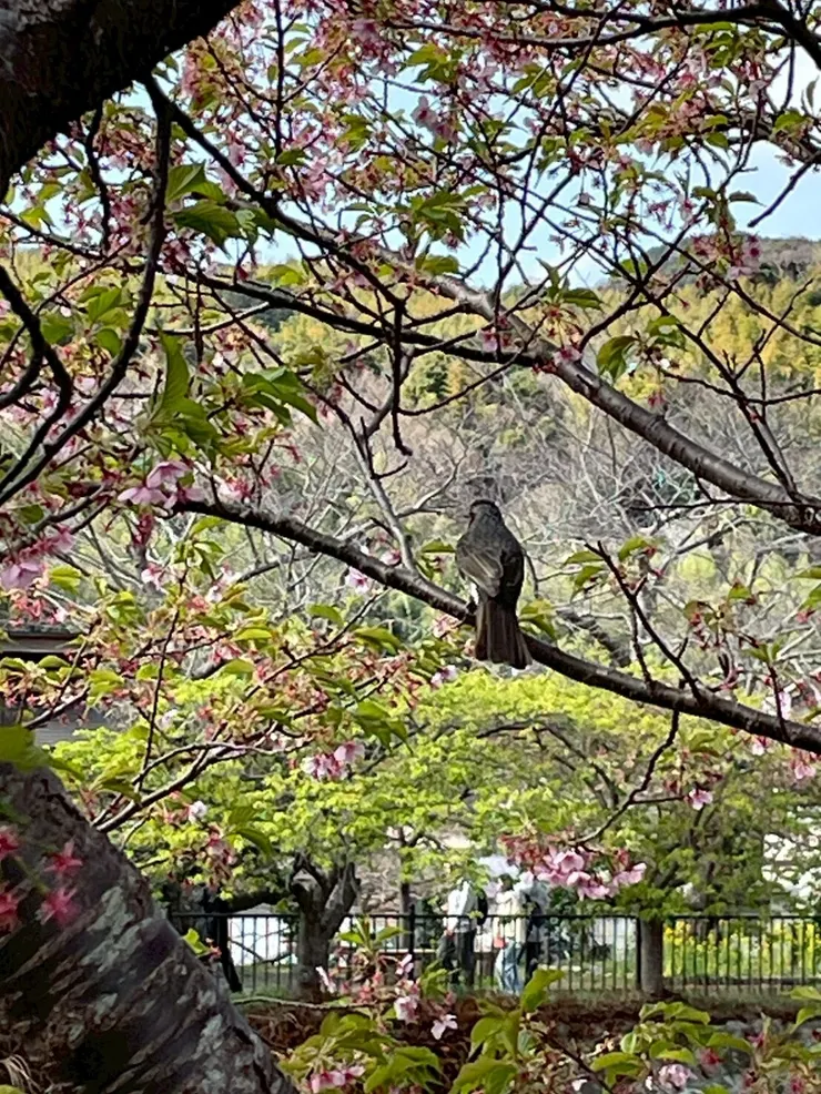 春を感じようと河津桜まつりに向かったものの、5割り程が咲き落ちて緑になってました。