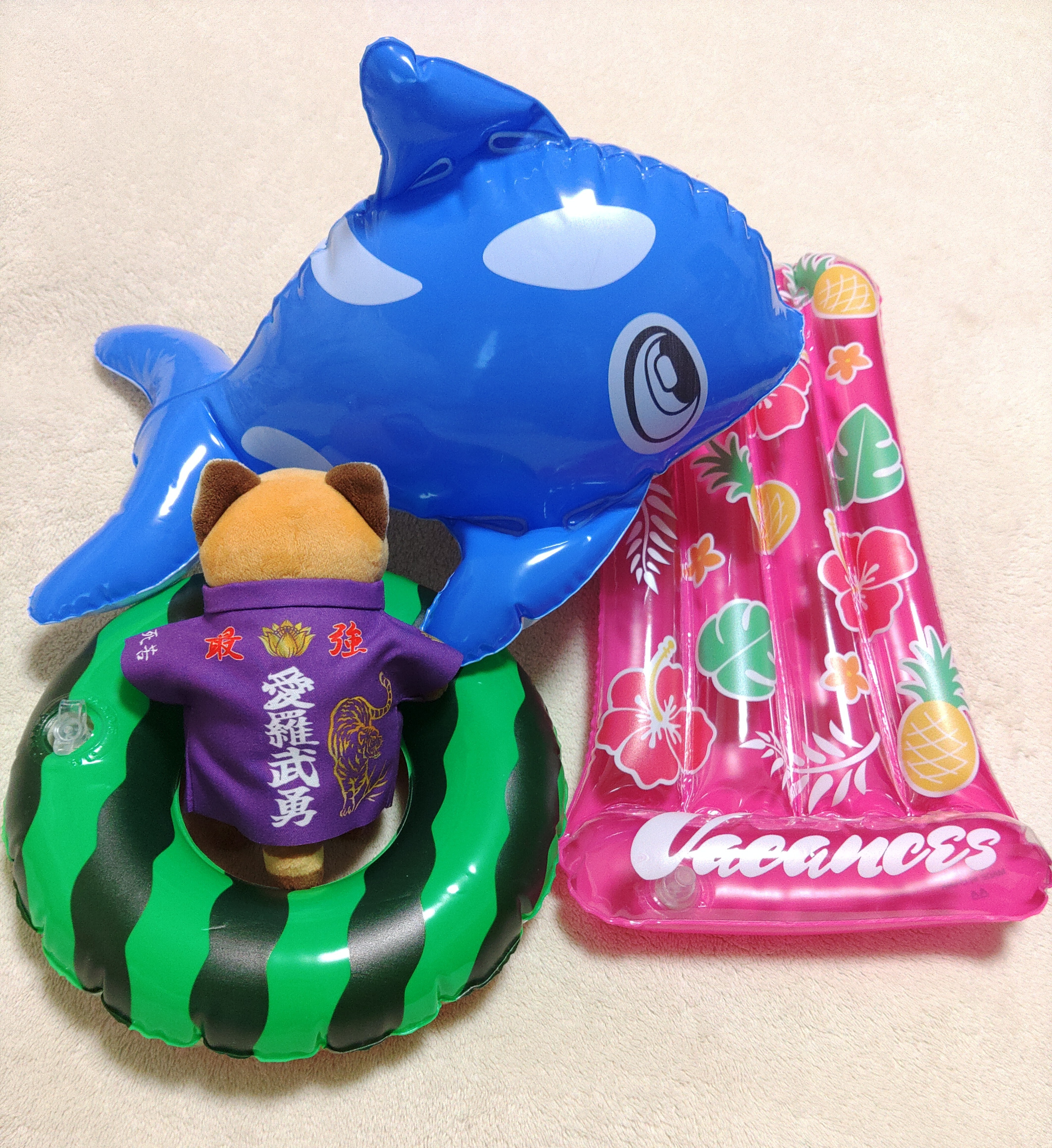 ゴムボートの他にも、よく見かける空気もののぬい用がいくつも…