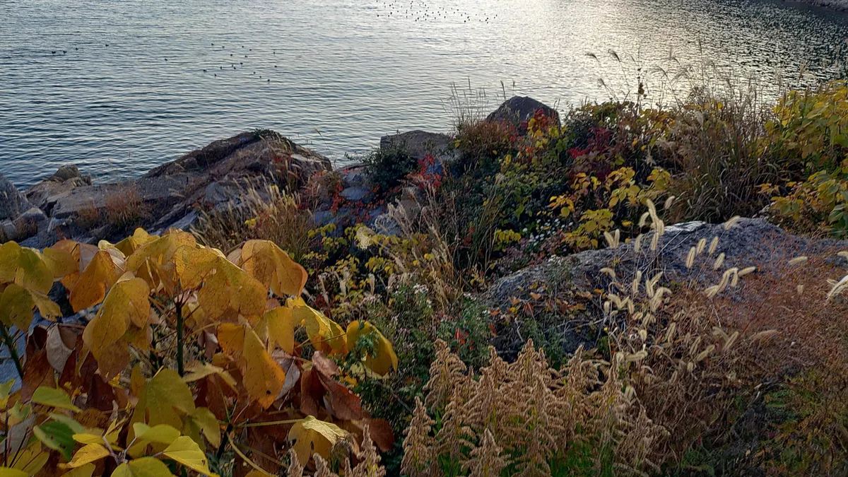 山陰に入る夕陽が絶妙なアングルで好きです。