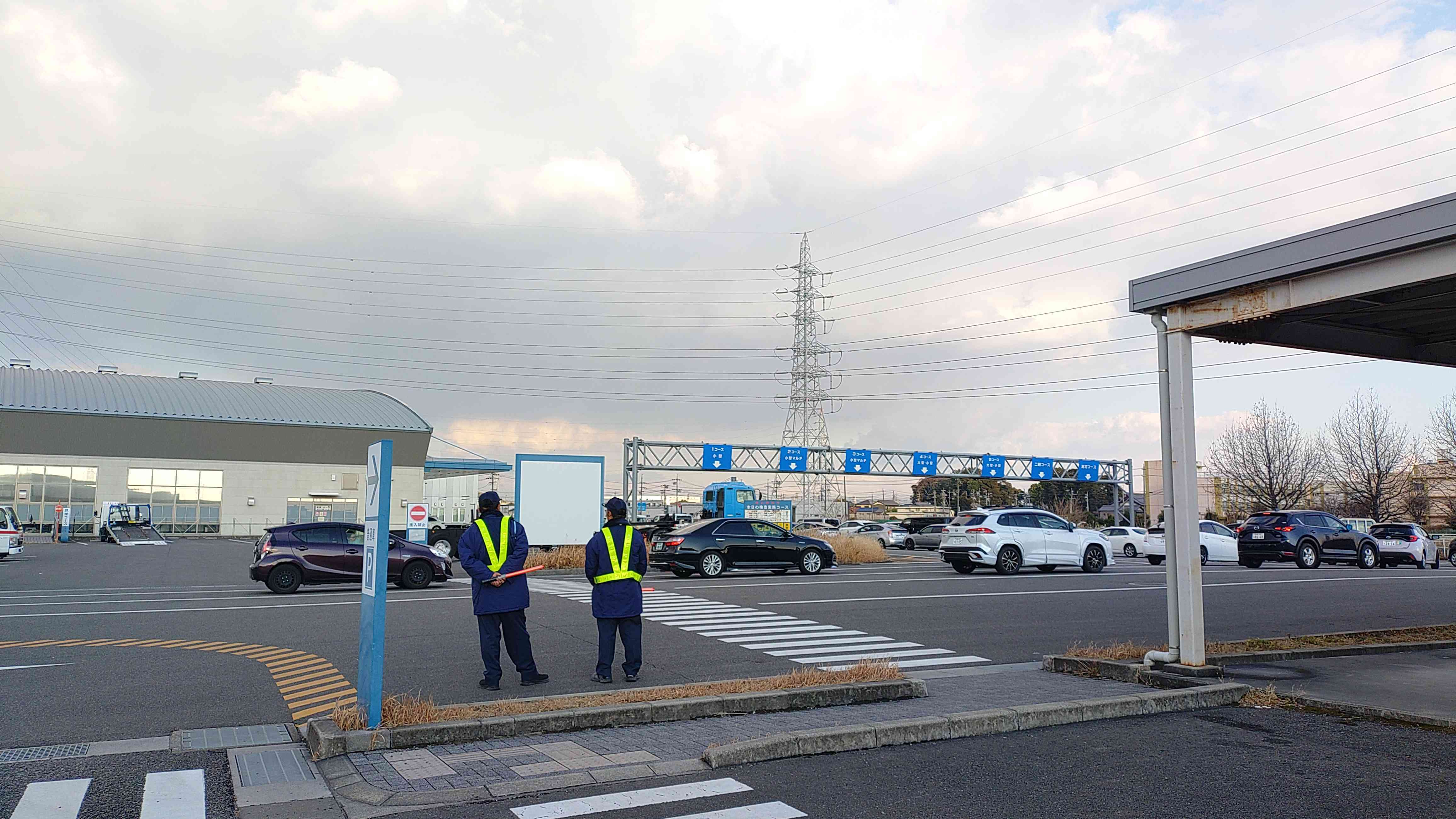 車検待ちの列が道路にまで伸びています