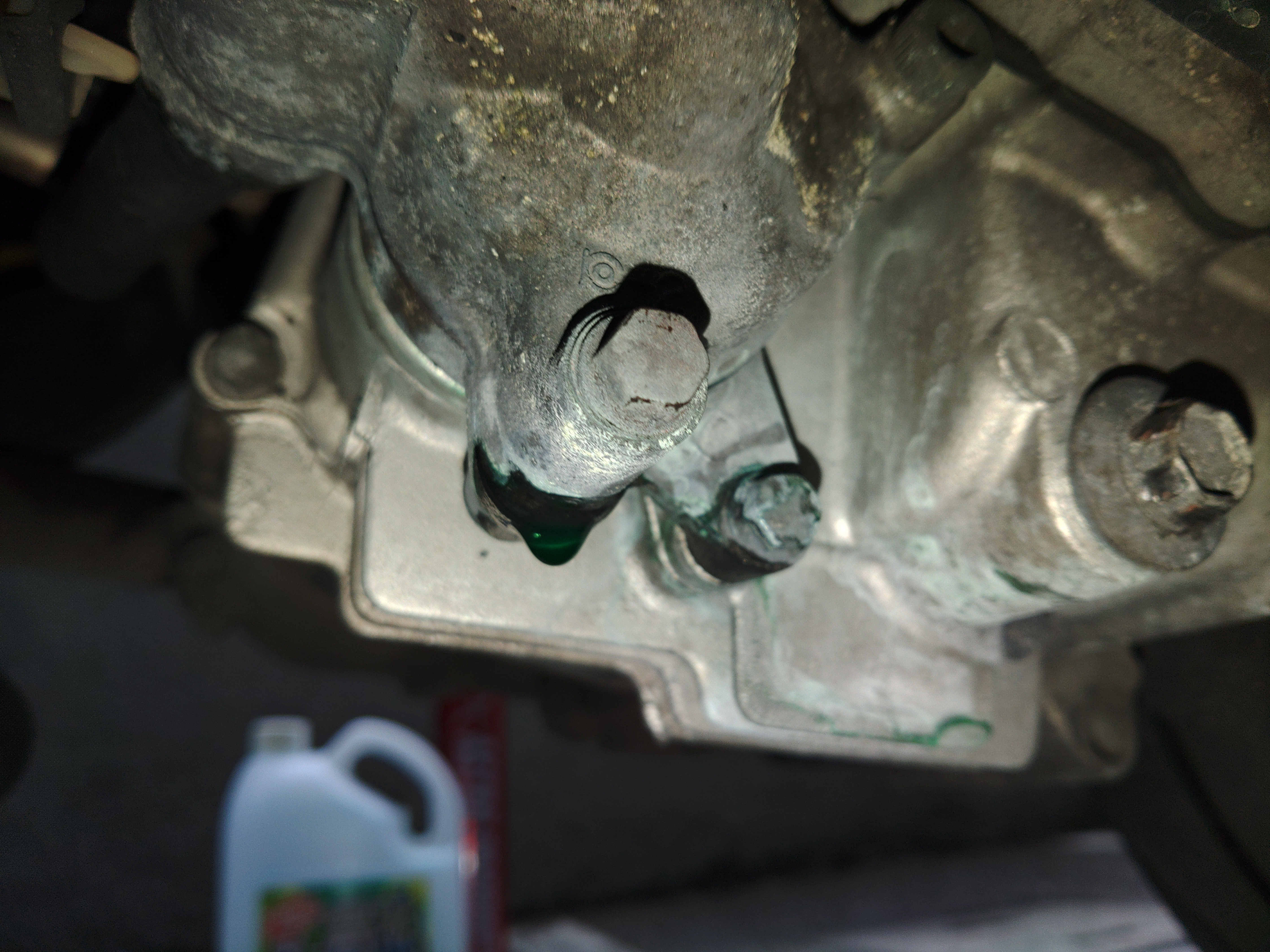 の原因:エンジン下のパッキン(ウォーターポンプ?)から冷却水💧漏れ てでした。