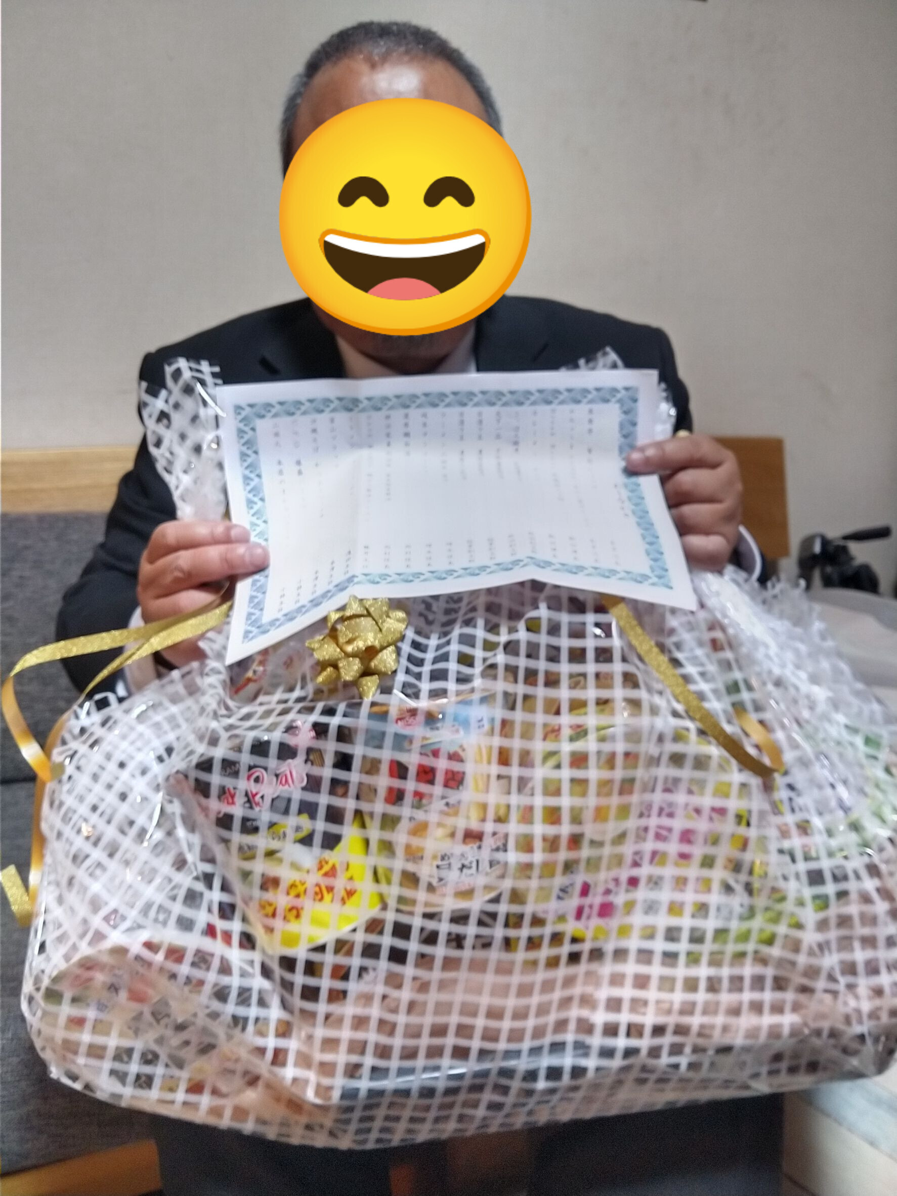 や、部下が「これまでは『退職』だったから親睦会から花束贈呈は普通にやってたのに、単なる異動だったら所属長を3年もやったのに何もないのはあんまりだ」とか事務所で話していたのを、「花束なんて食えないし別にいいよ笑、それよりカップラーメンの方がよっぽど嬉しいわ」なんて言っていたのを受けて、ってことらしいです(笑)