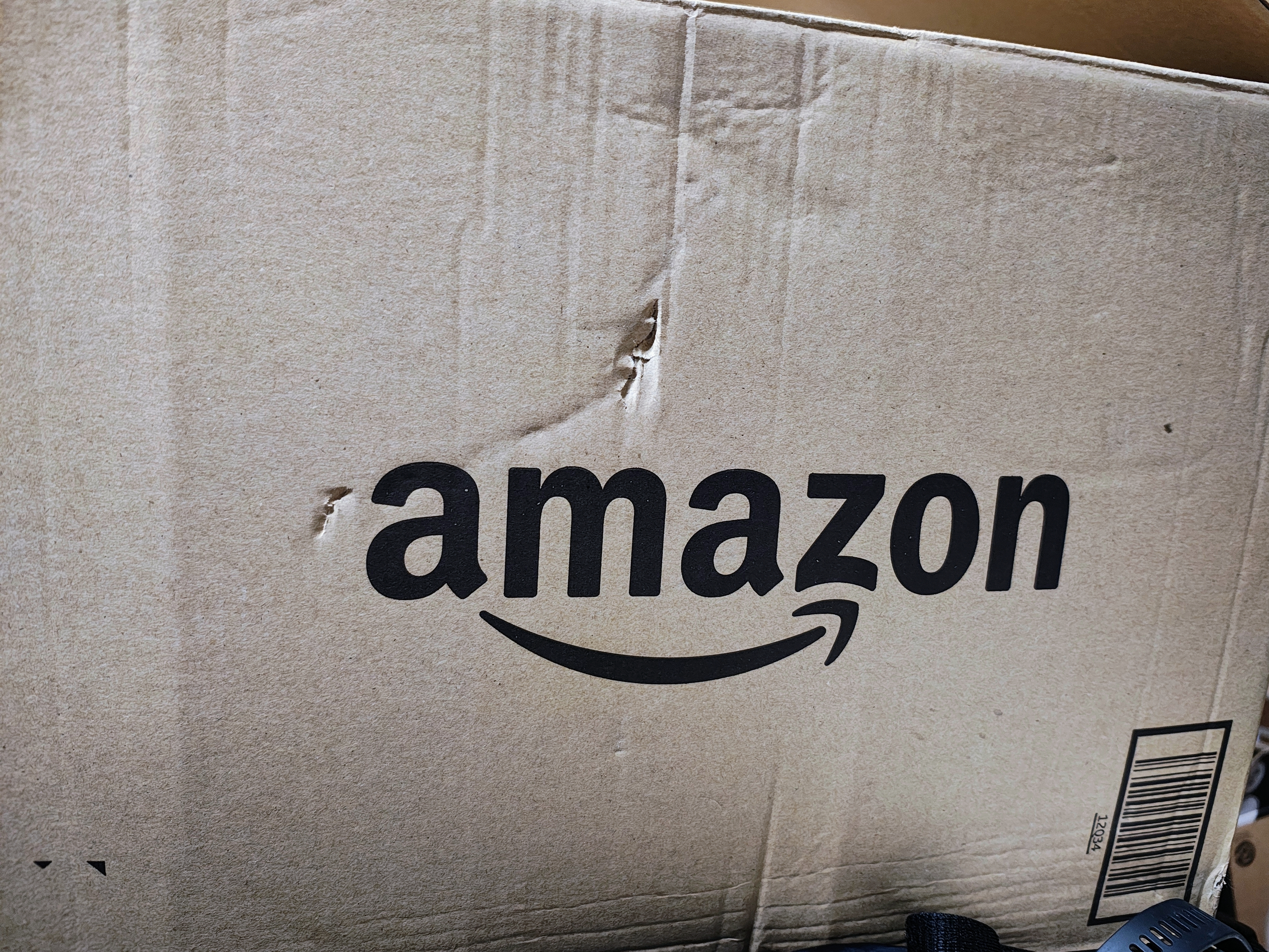 箱に穴が開いてるけど靴なので問題無し‼️それよりも配達代無料で大丈夫か心配Death‼️