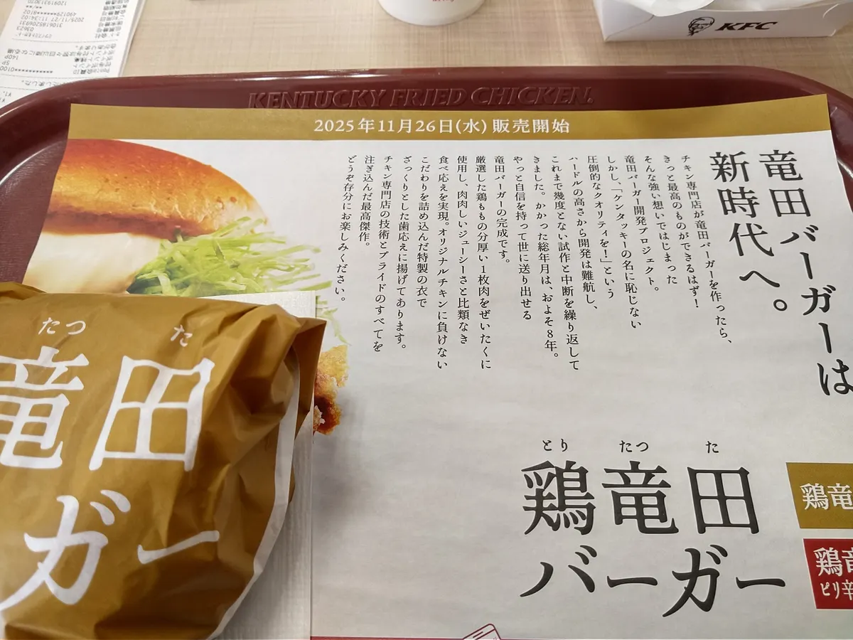 o(^o^)o昨日11/26よりKFCから鶏竜田バーガーが新発売されています。