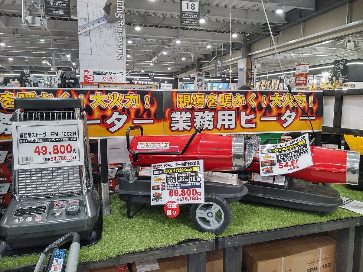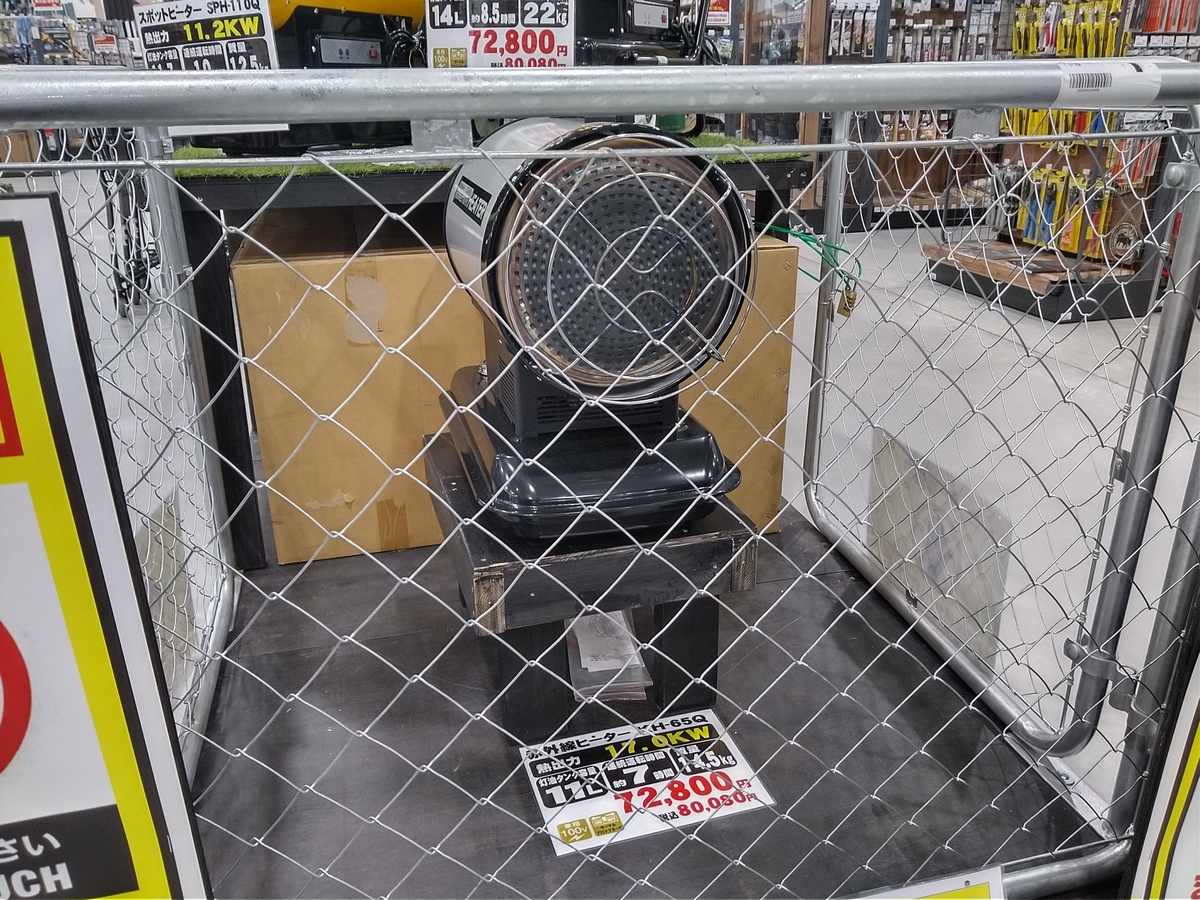 (^-^)業務用ヒーターです。現場を暖かくしてくれるのですね。大火力!