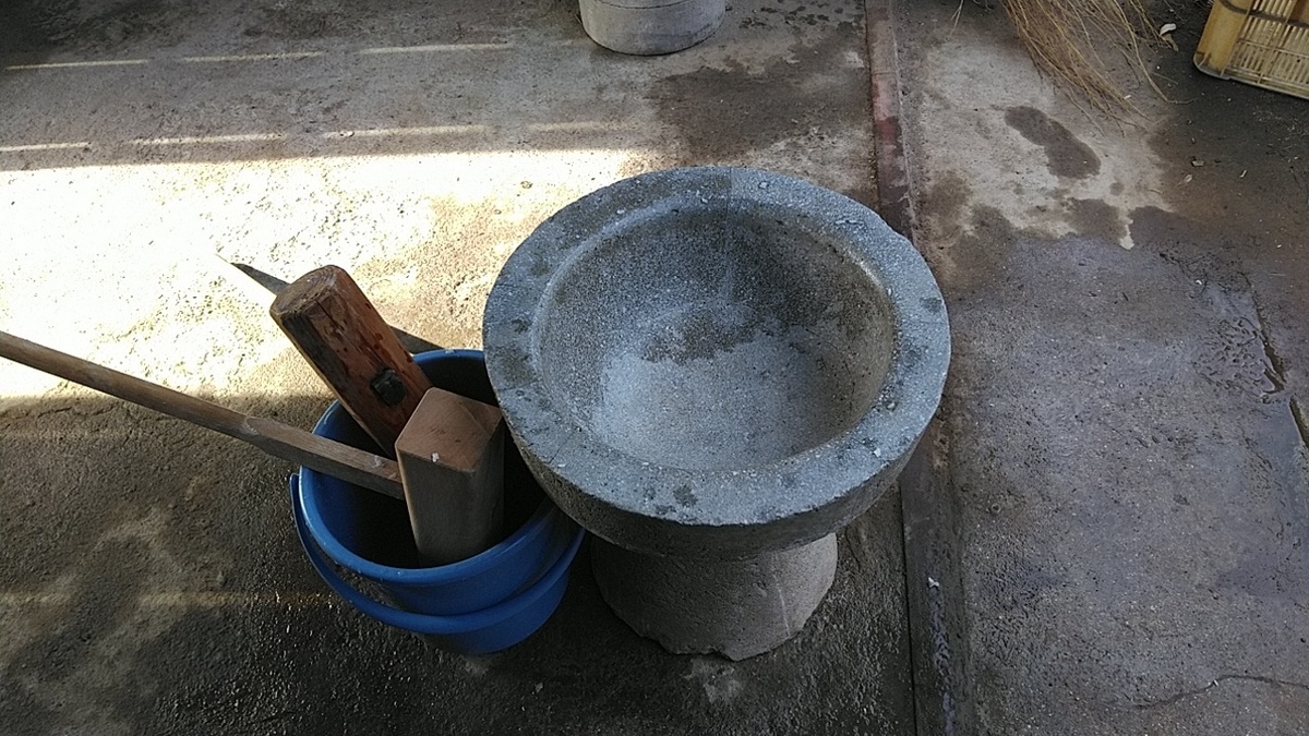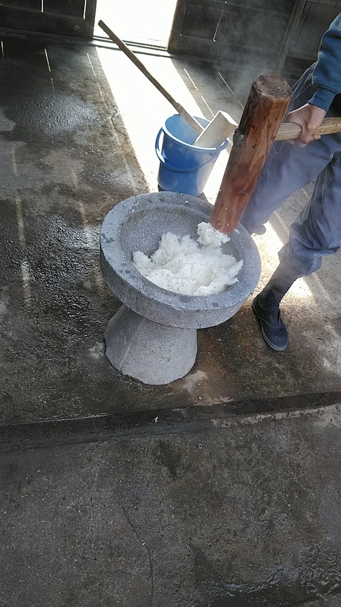 近所でも臼と杵でつくのはもう我が家だけでなので