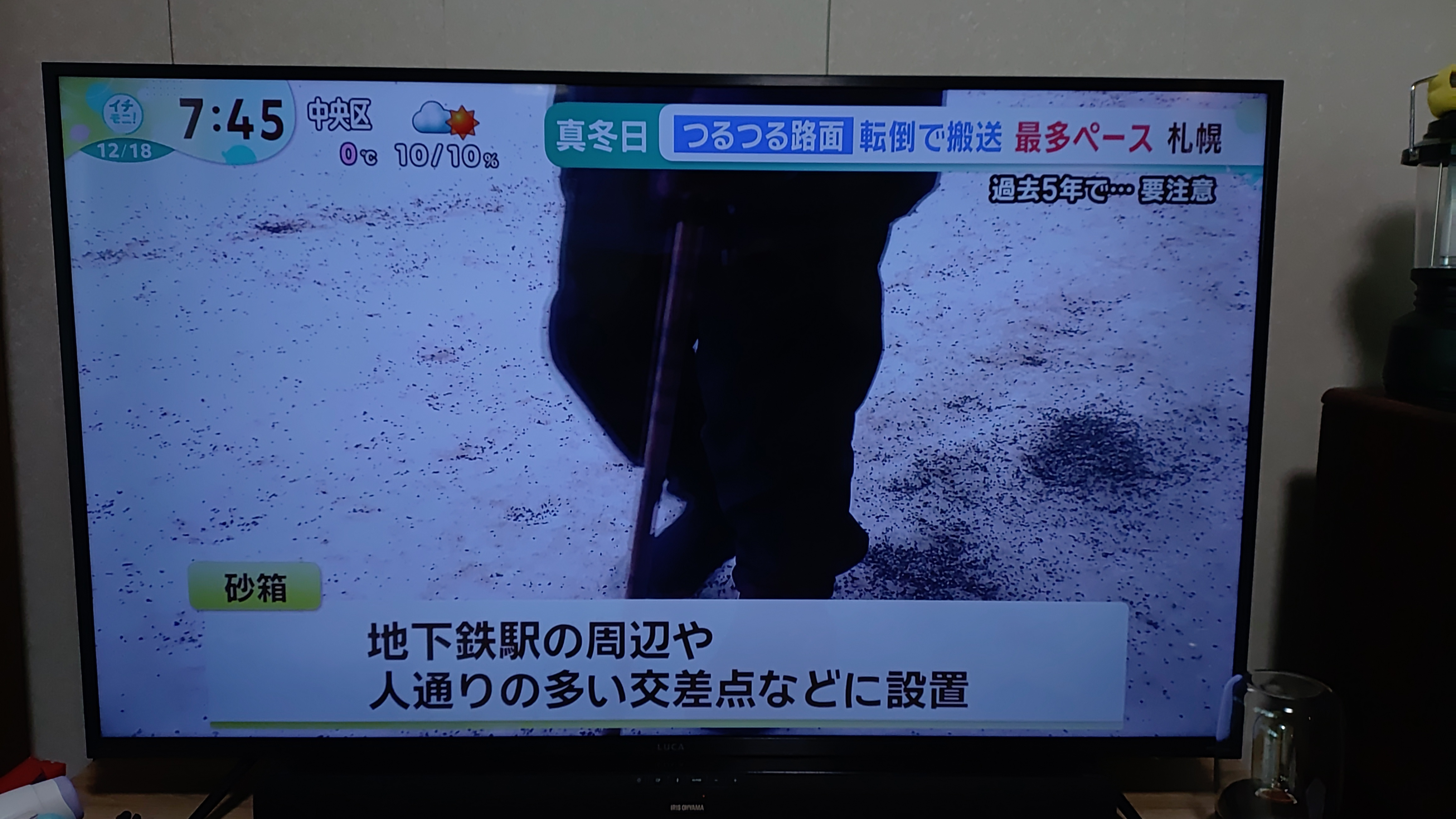 月曜日の大雪が歩道や日陰で溶けない札幌市内は歩道はもう、わやです。みんなで砂を撒こう!