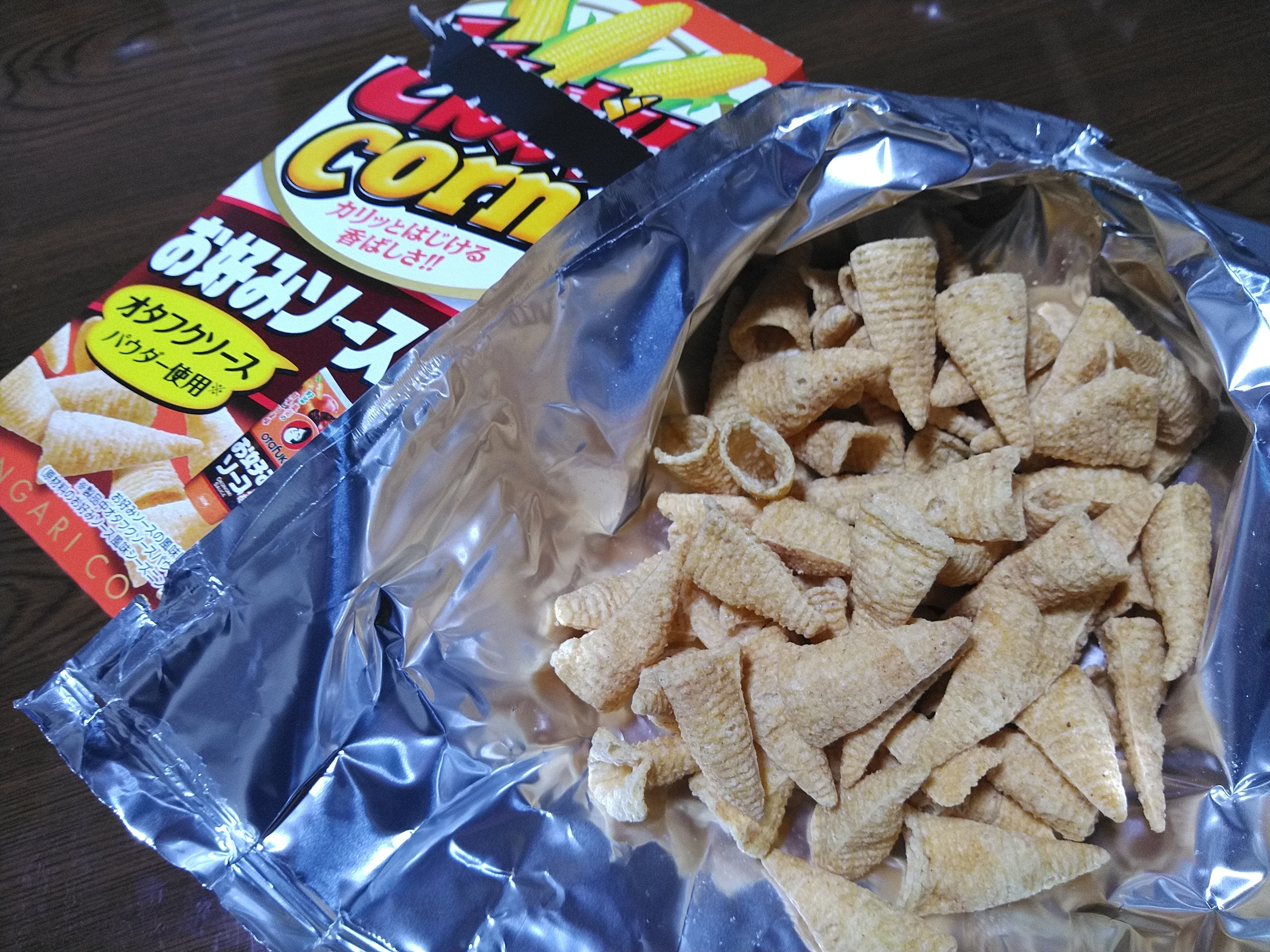 投稿を表示気のせいかもしれませんがとんがりコーンの色がオタフクソースではなく紅しょうが風味に見えます😳