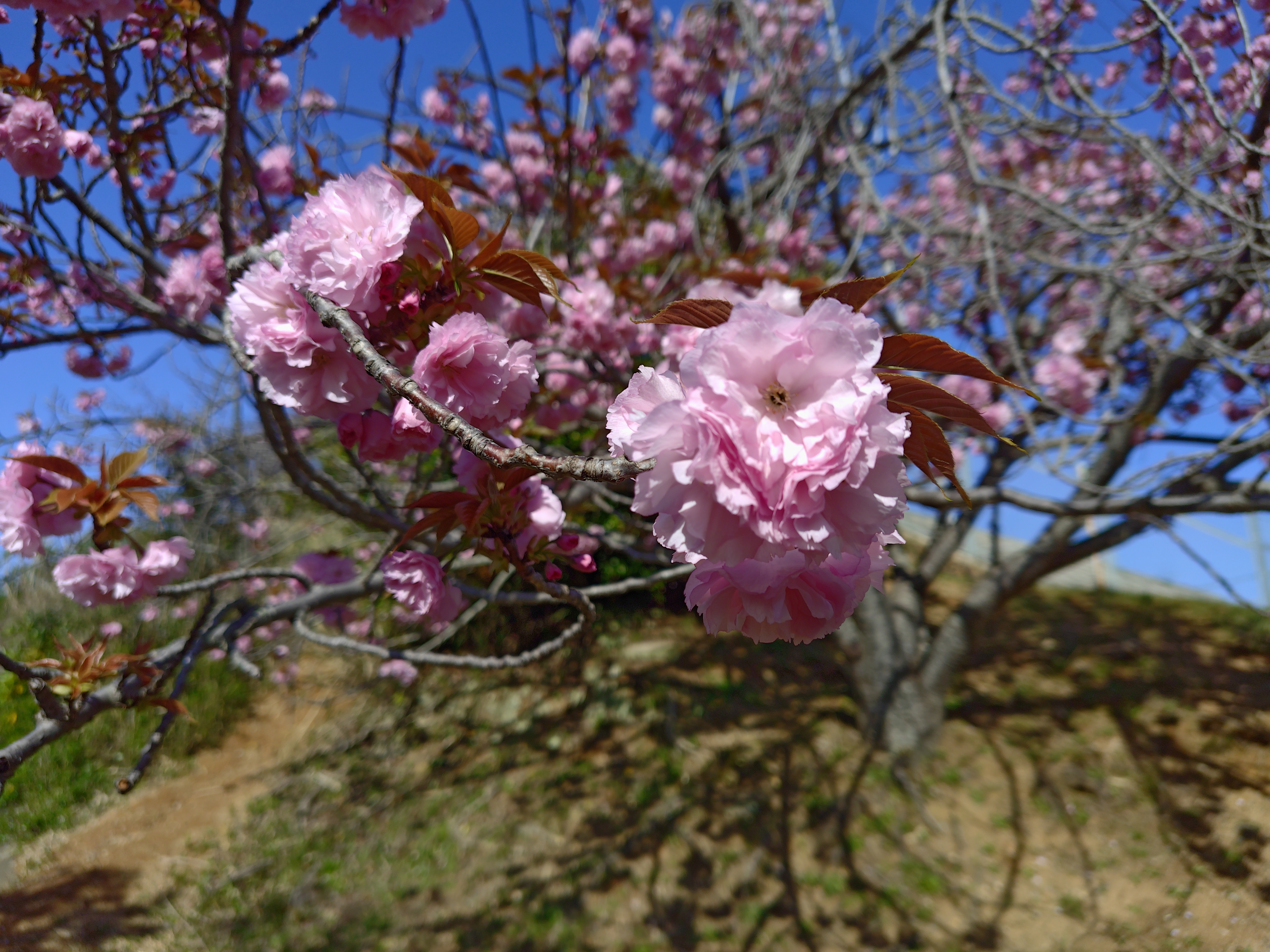 八重桜の一種の「カンザン(関山)」が数本ですが綺麗にしてました。☺️